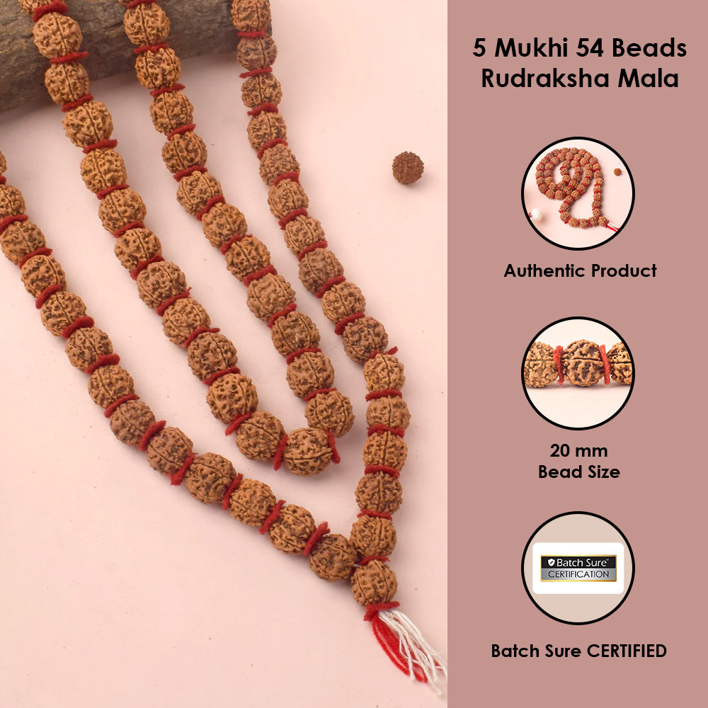 Shop 5 Mukhi Rudraksha Kantha Mala 54 Beads | Satvikworld.com