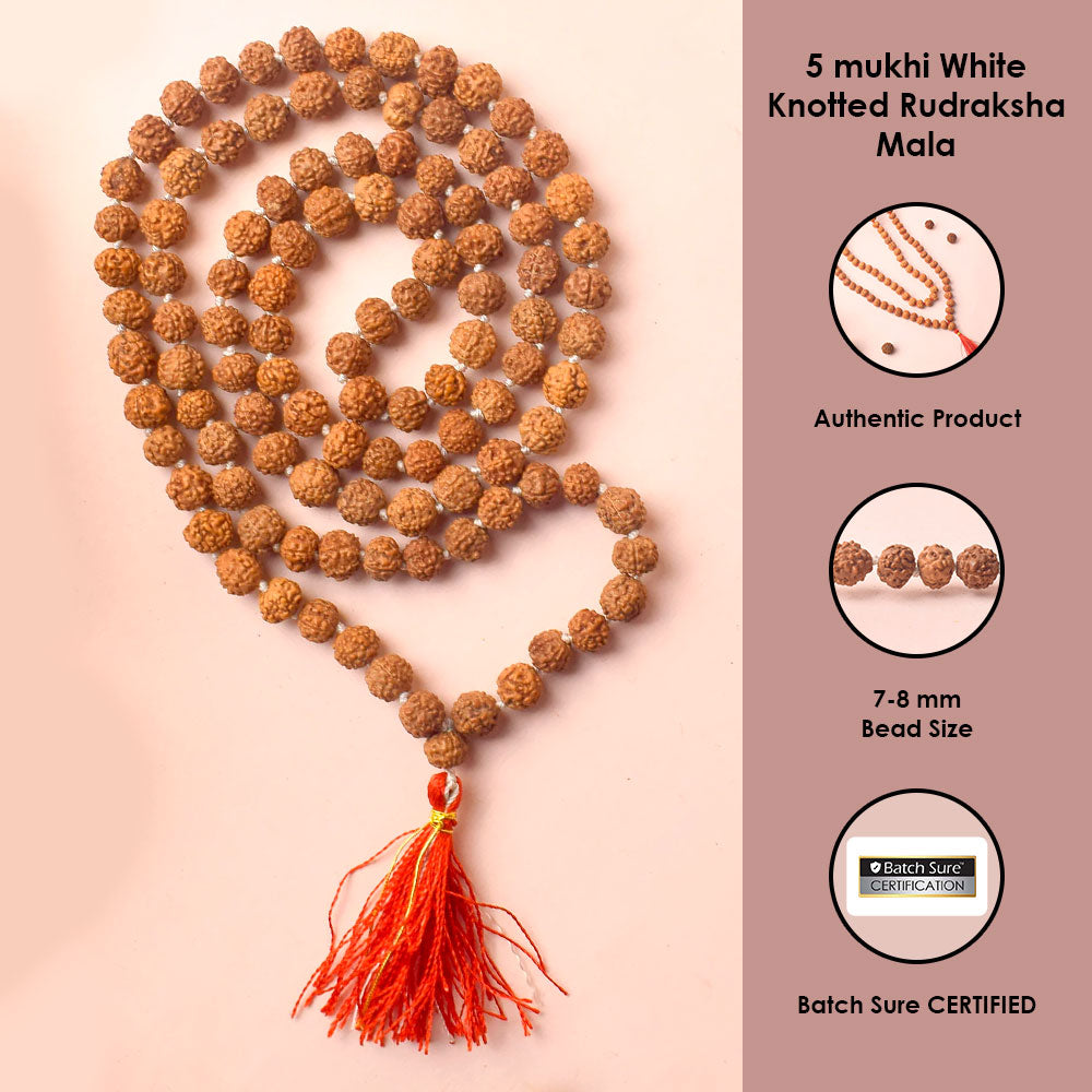 • Item Name: 7-8mm 5 mukhi White Knotted Rudraksha Mala
