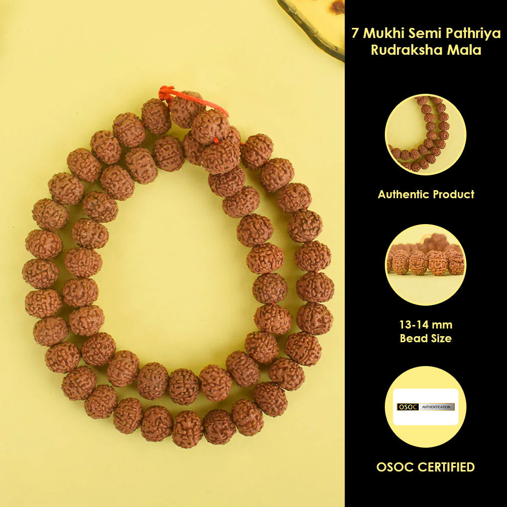 7 mukhi semi pathriya rudraksha mala 13-14 mm