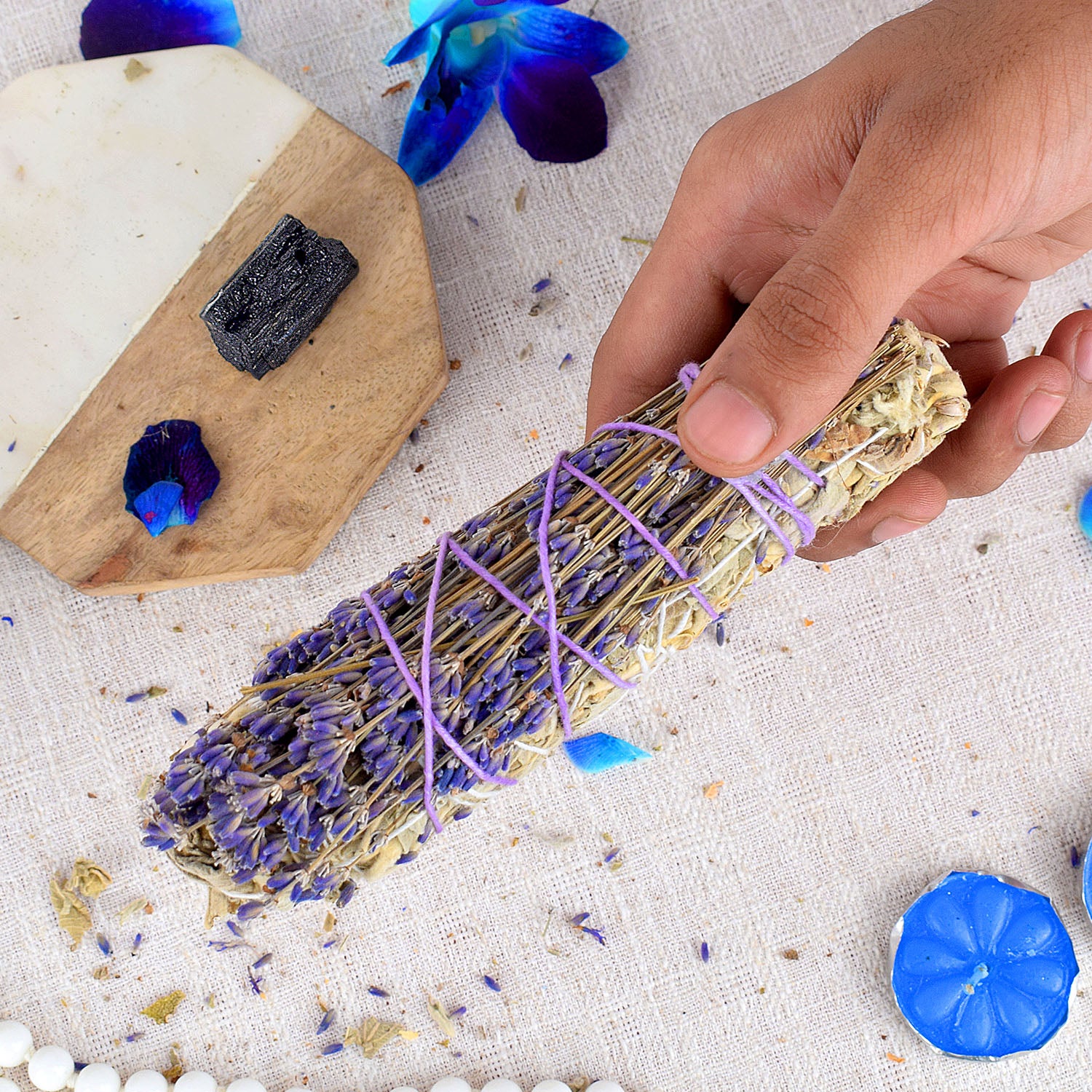 WHITE SAGE WITH LAVENDERS & BLACK TOURMALINE CRYSTAL HEALING SMUDGES – Satvikworld.com