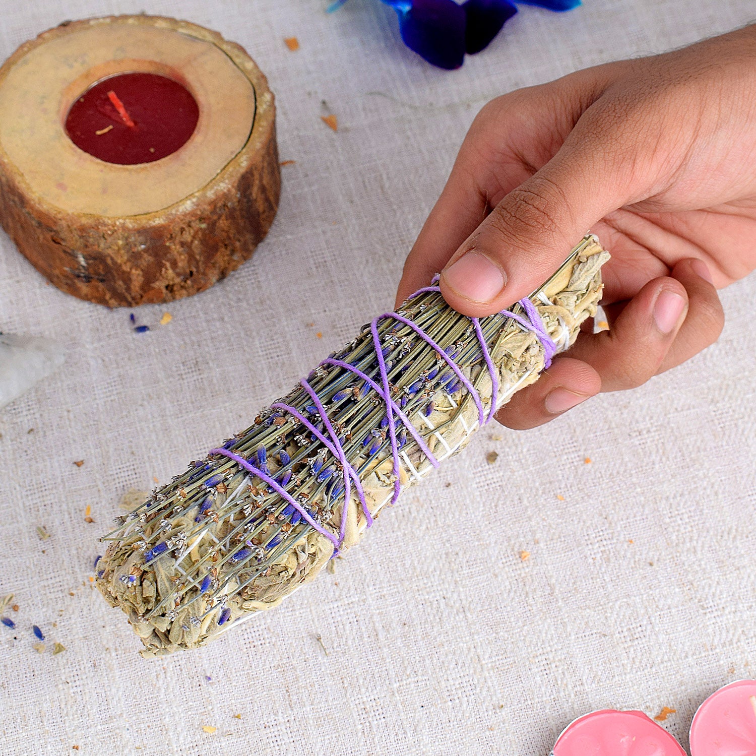 WHITE SAGE WITH LAVENDERS & RAINBOW MOONSTONE CRYSTAL HEALING SMUDGES – Satvikworld.com
