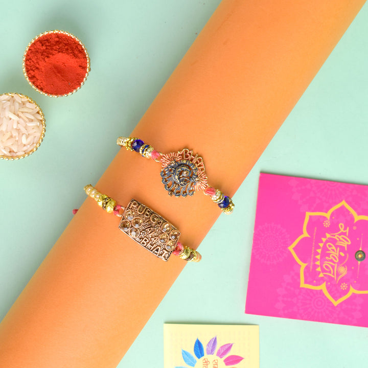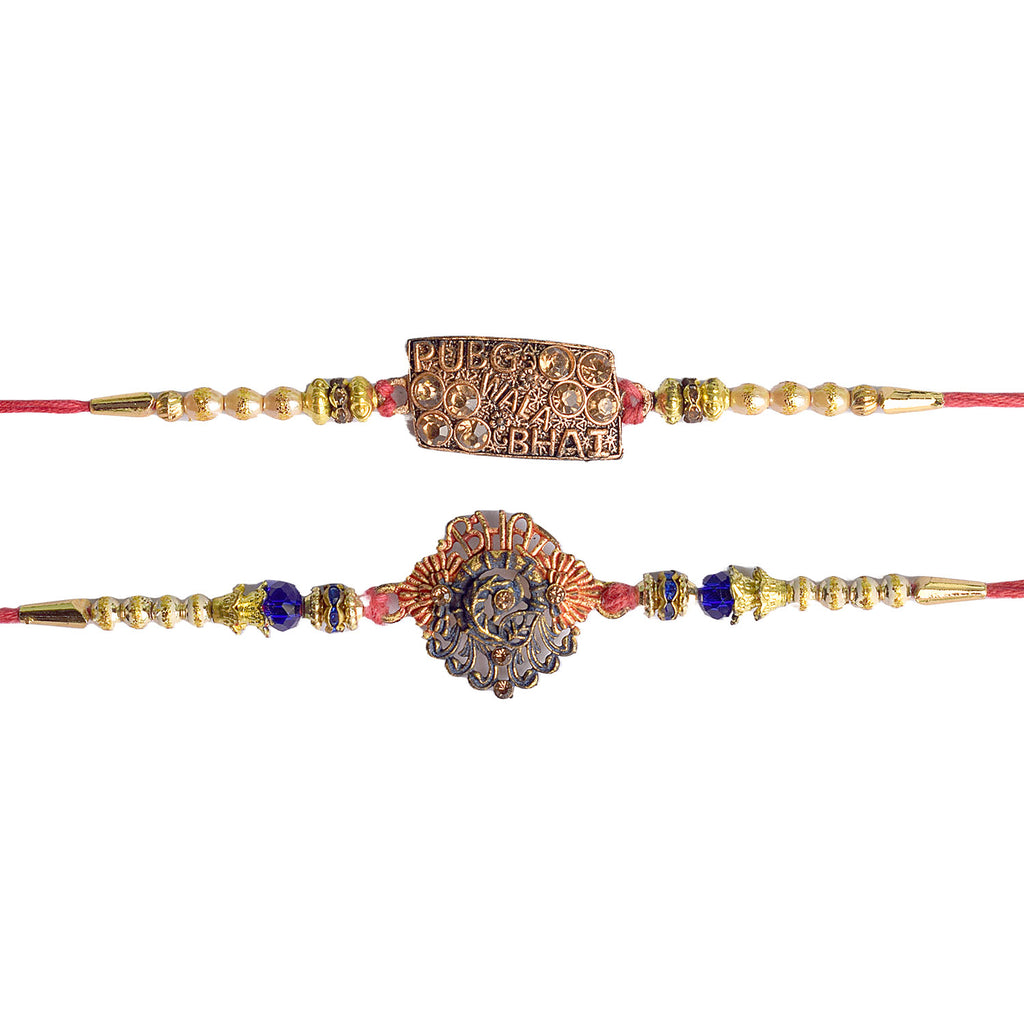 About Product: Strengthen the sacred bond of sibling love with this Set of Two Rakhis, beautifully designed for your beloved brothers. Each rakhi features traditional threadwork and intricate detailing, making them a perfect blend of spirituality and festivity.