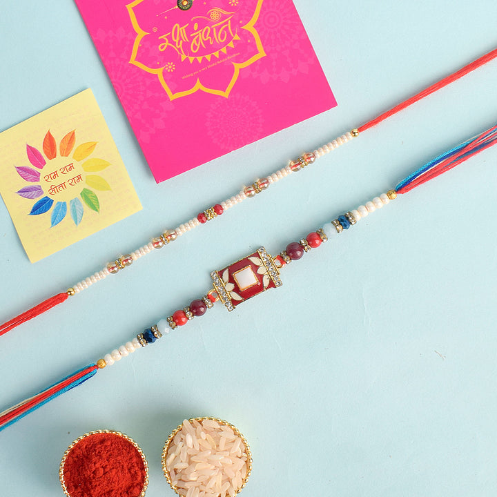 • Item Name: Traditional Rakhi Set of 2 with Roli Chawal & Ram Sita Stickers