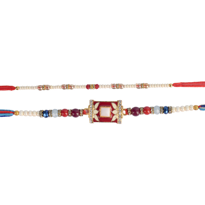 About Product: Strengthen the sacred bond of sibling love with this Set of Two Rakhis, beautifully designed for your beloved brothers. Each rakhi features traditional threadwork and intricate detailing, making them a perfect blend of spirituality and festivity.