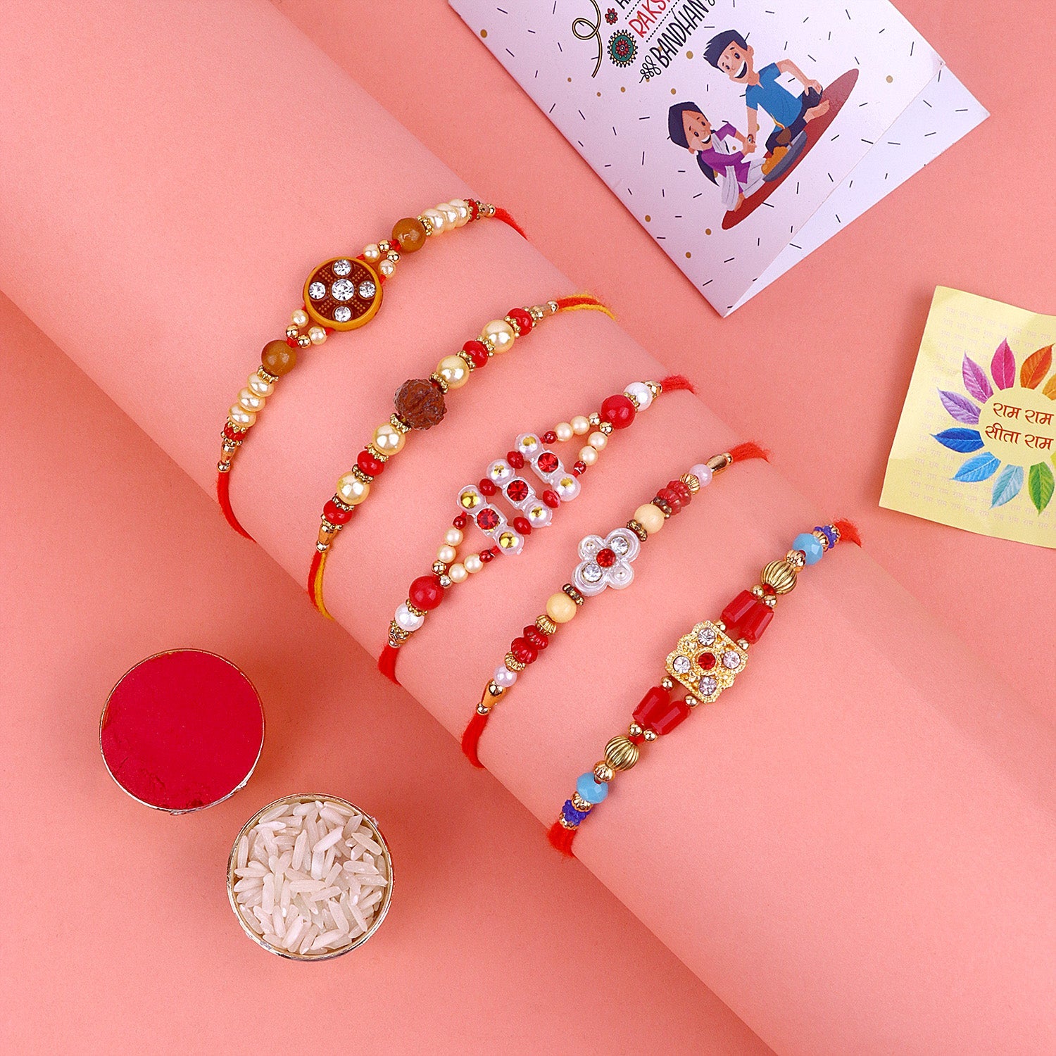 • Package: Assorted Rakhi Set of 5