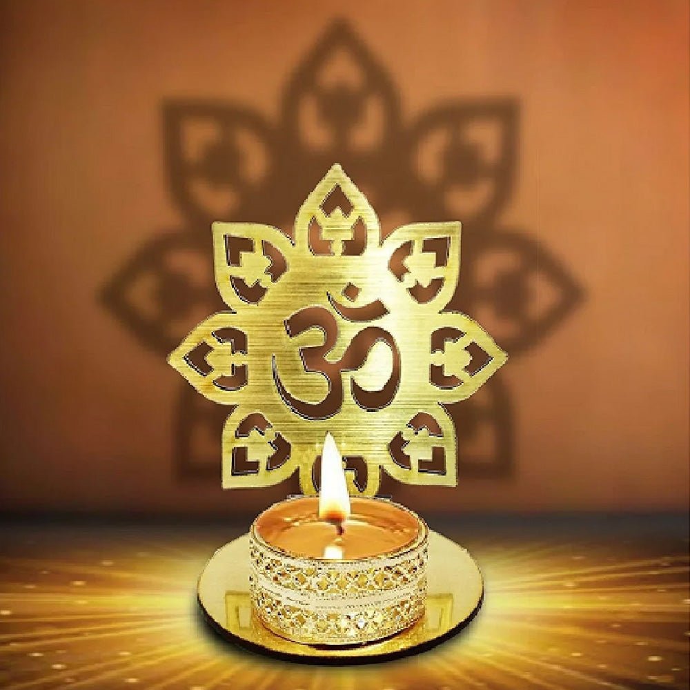 OM shadow diya | designer Om diya lamp | metal Om diya | spiritual diya décor | Om diya for pooja | shadow diya for meditation | decorative Om lamp | Hindu religious diya | diya with Om symbol shadow |
