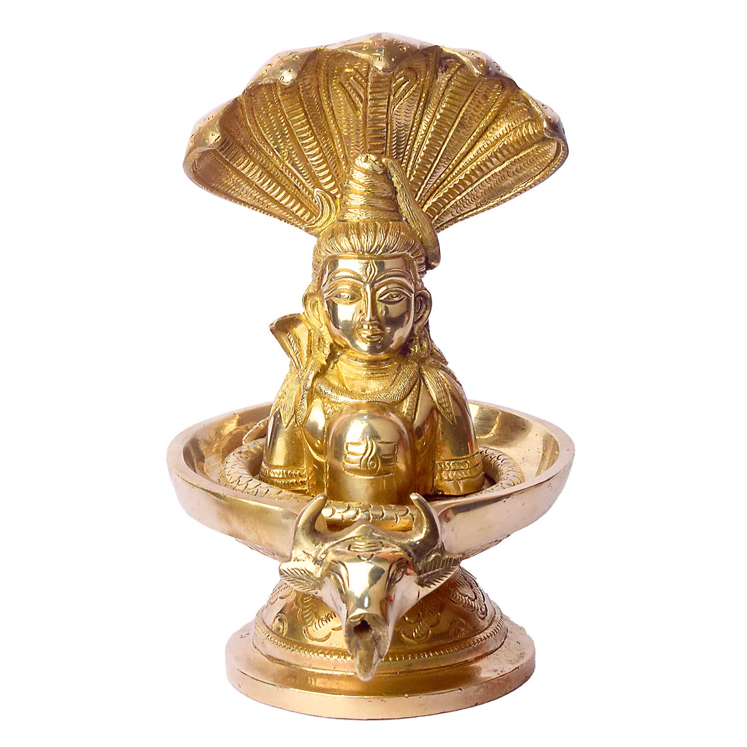 About Product:  Bring divine energy and blessings into your home with this beautifully crafted Brass Shivalingam Diya. Featuring a detailed Naga hood over the sacred Shivalingam and Nandi at the base, this diya represents Lord Shiva in his most powerful form.