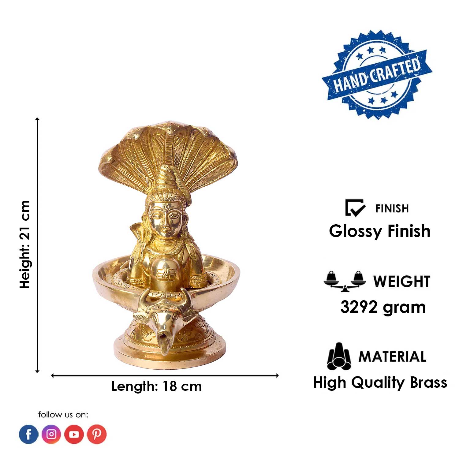 • Crafted from premium brass, our idols are designed to be durable, resistant to corrosion, and retain their luster for many years.