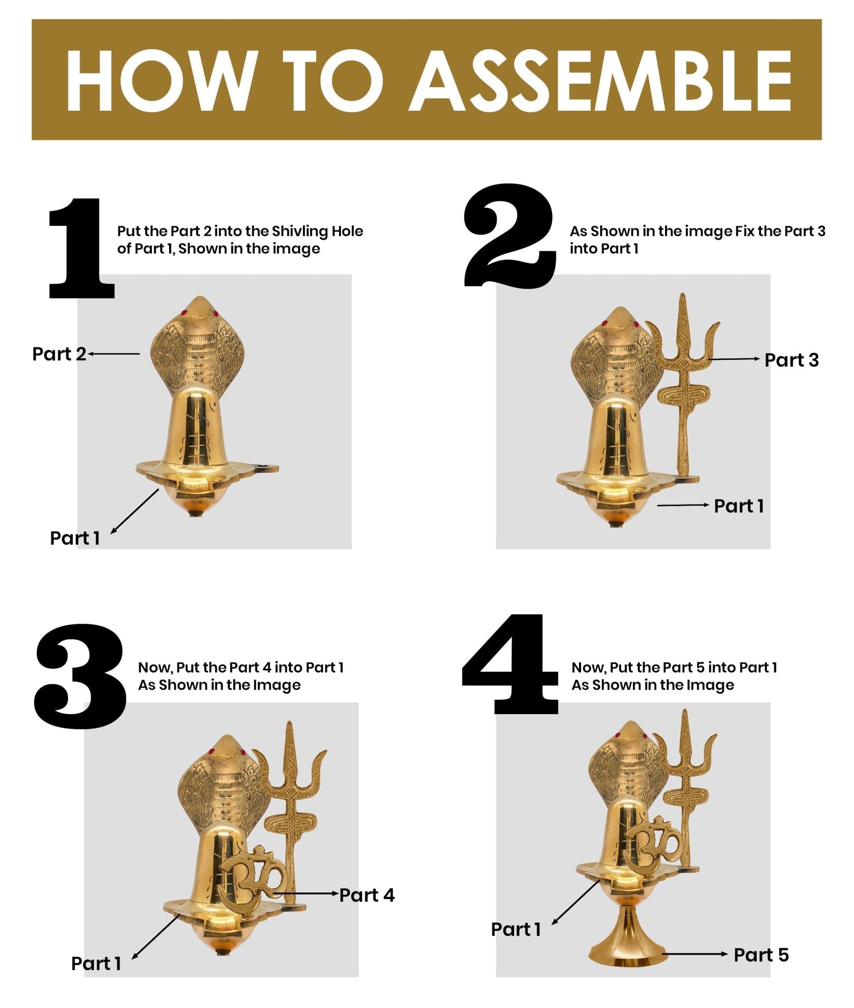 • Item NamePure Brass Golden Shivlinga with De-attachable Trishul, Sheshnag and OM.