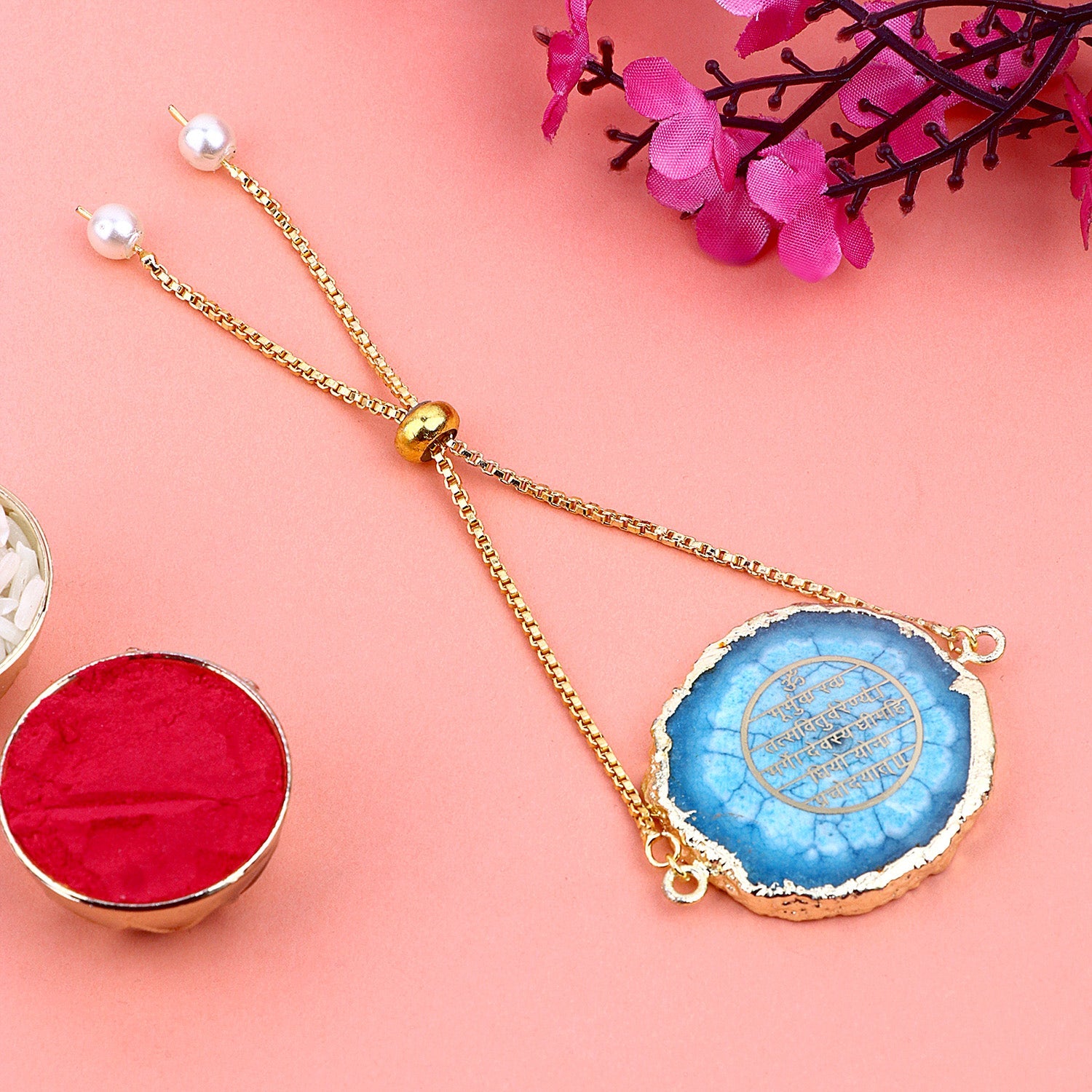 Serenely Crafted Agate Stone Gayatri Mantra Rakhi