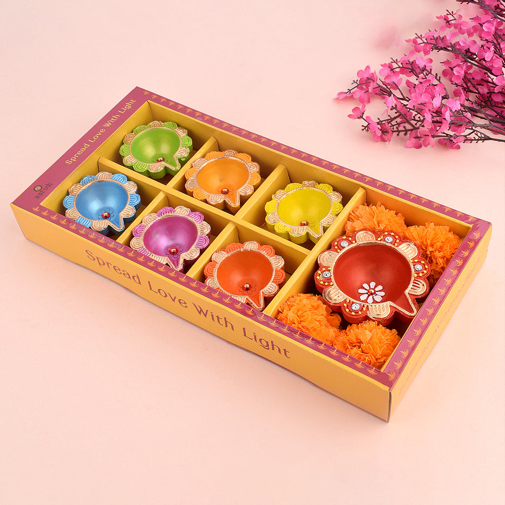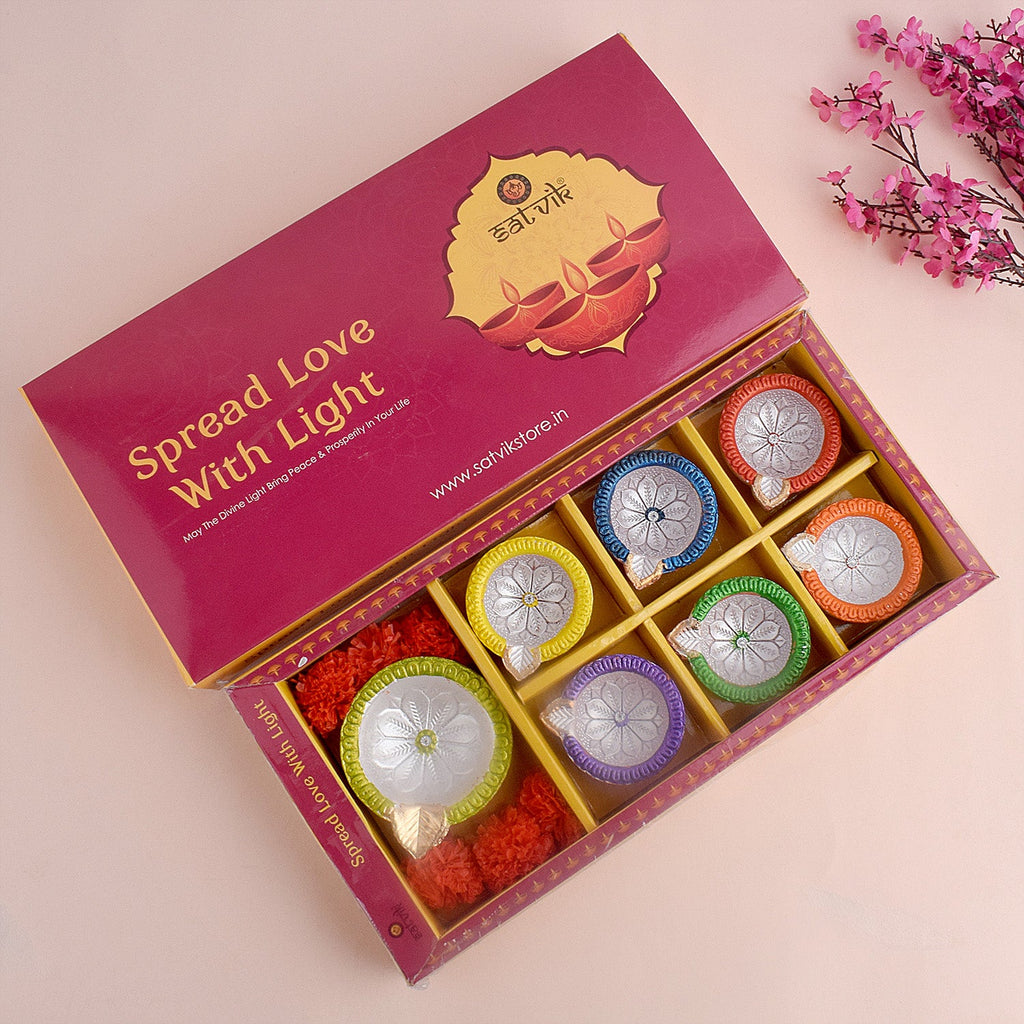 Our carefully curated assortment includes a variety of traditional and contemporary Diwali essentials that will elevate your celebrations. From the timeless Clay Diyas to the ornate Brass Diyas, our collection showcases the craftsmanship and artistry that symbolize the festival's essence. Illuminate your space with our Decorative and Metal Diyas, designed to add radiance to every corner.