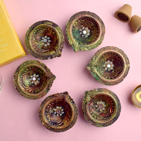 Oxidized Clay Diyas Illumin...