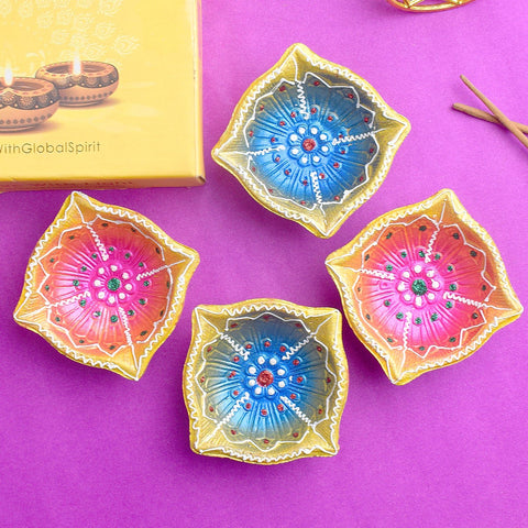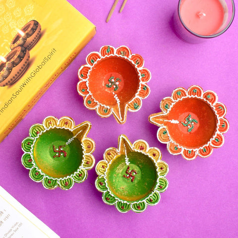 Hand-Painted Clay Diyas Ill...