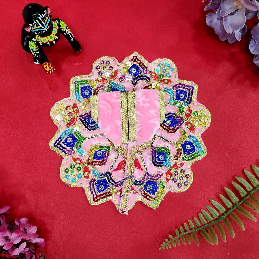 Adorn your Laddu Gopal with this graceful pink Dress No.2, Design-2, featuring delicate embroidery and intricate patterns that radiate divine charm. Perfect for daily pooja, Janmashtami, and festive celebrations, this soft, comfortable outfit adds a lovely devotional touch to your deity’s attire. Crafted to uplift the spiritual aura of your temple with elegance and love.