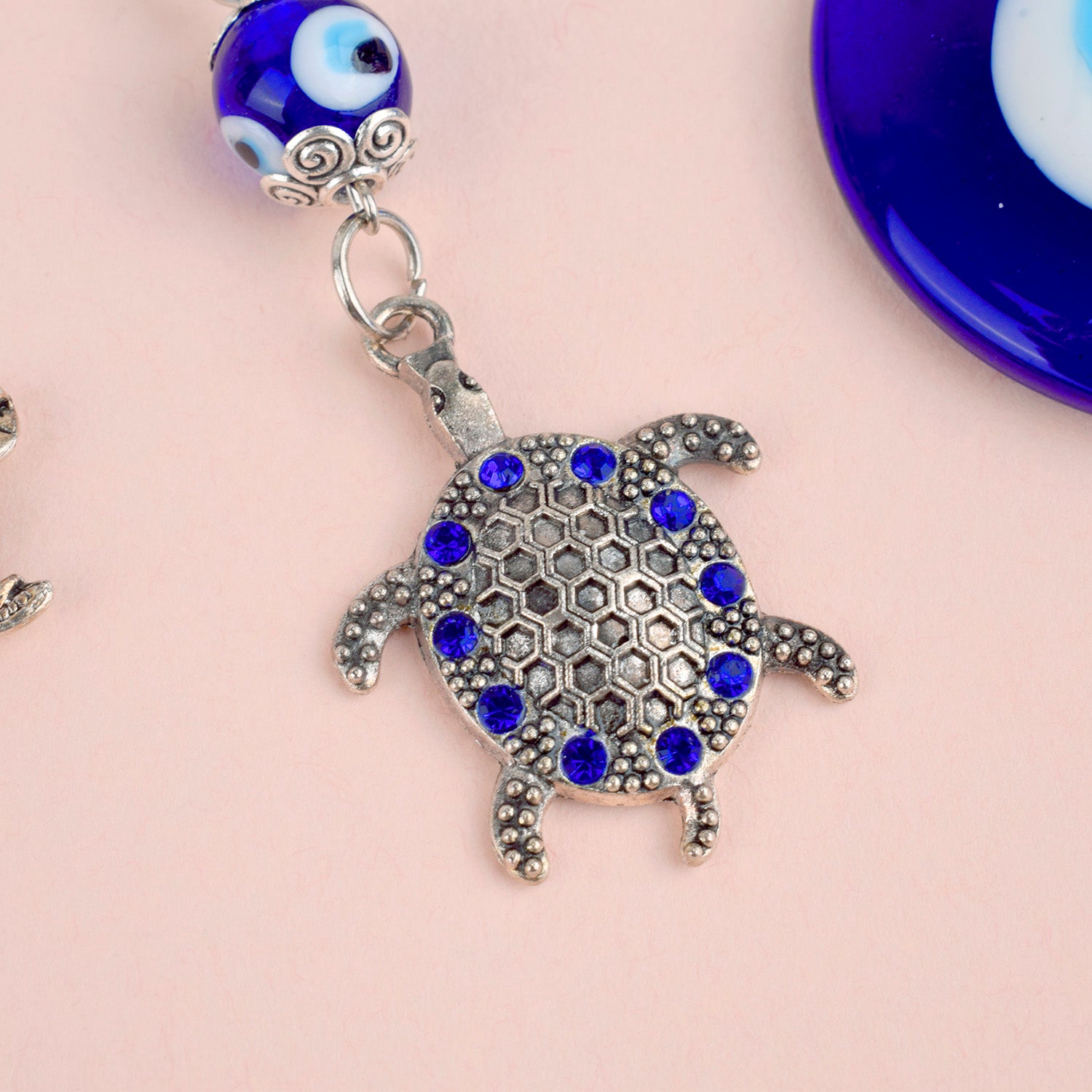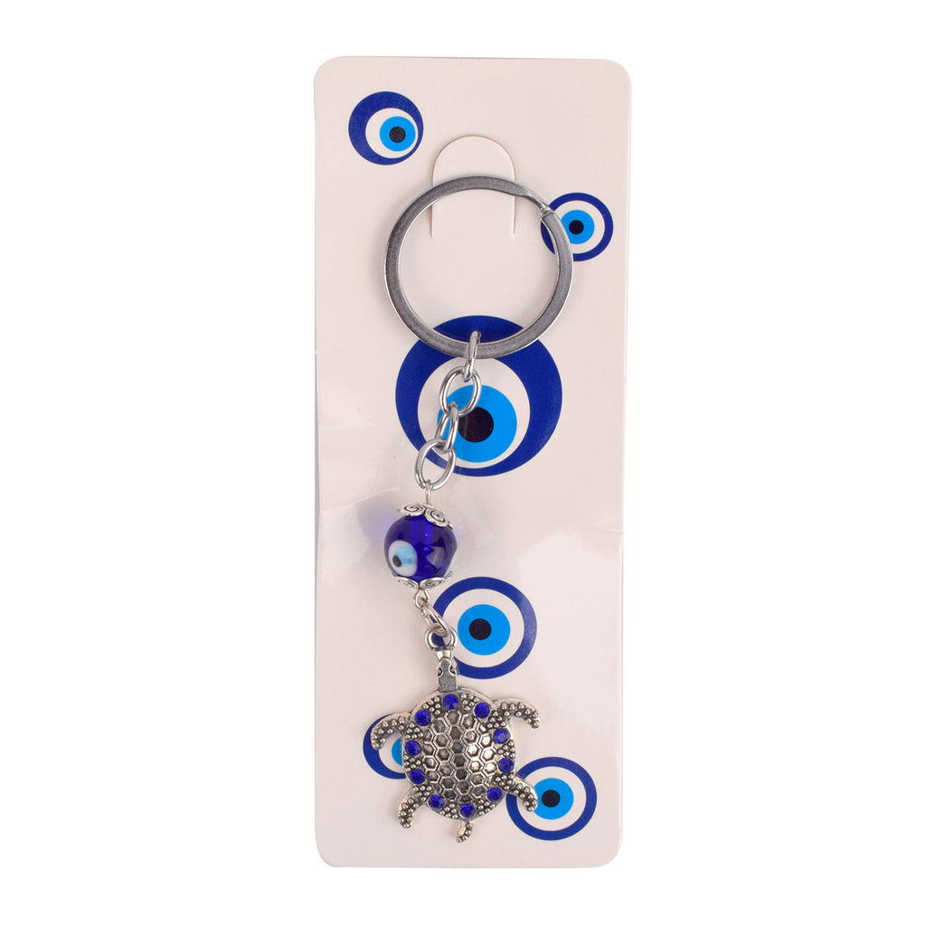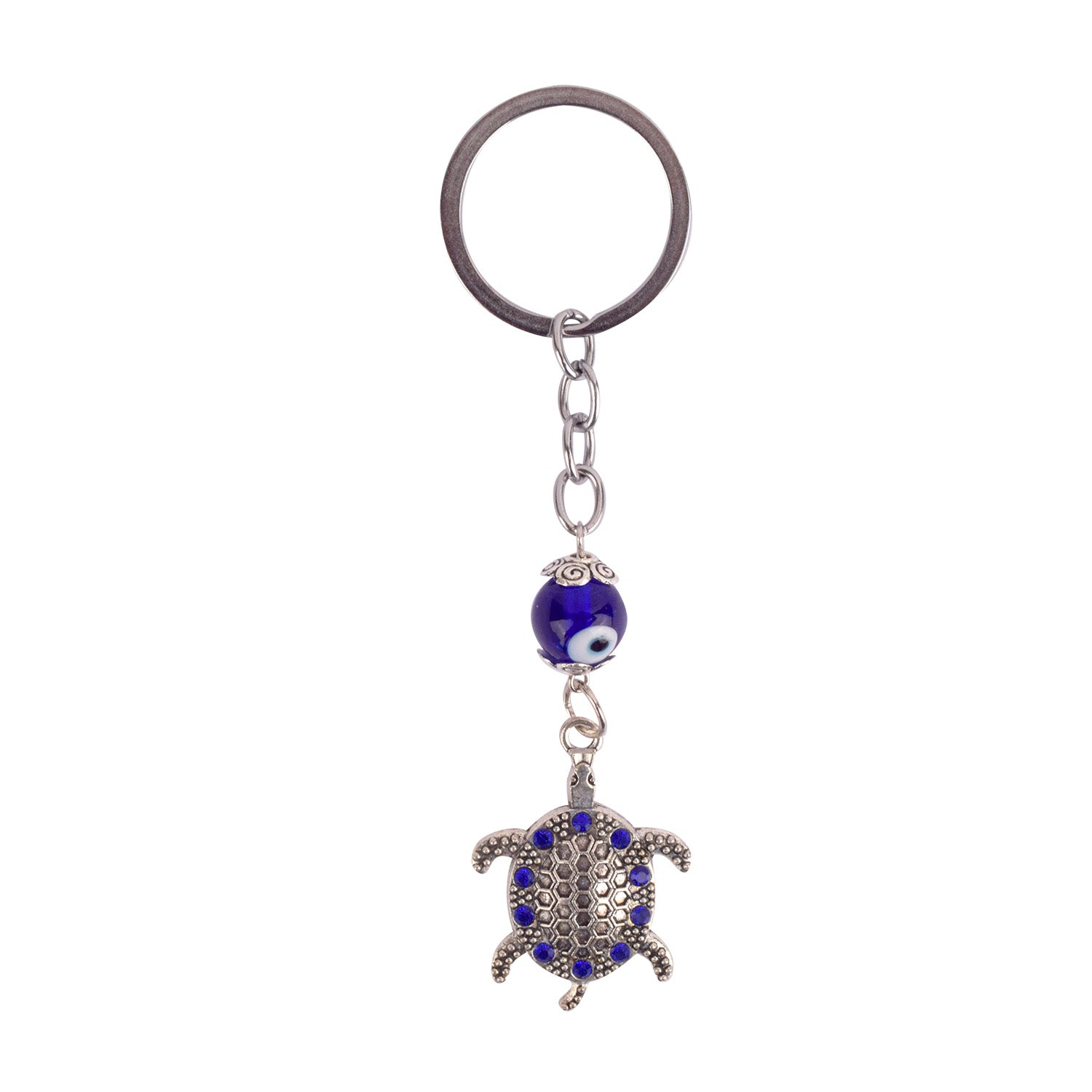 Blue Bead Silver Evil Eye Turtle Keychain | Buy Online | Satvikworld.com