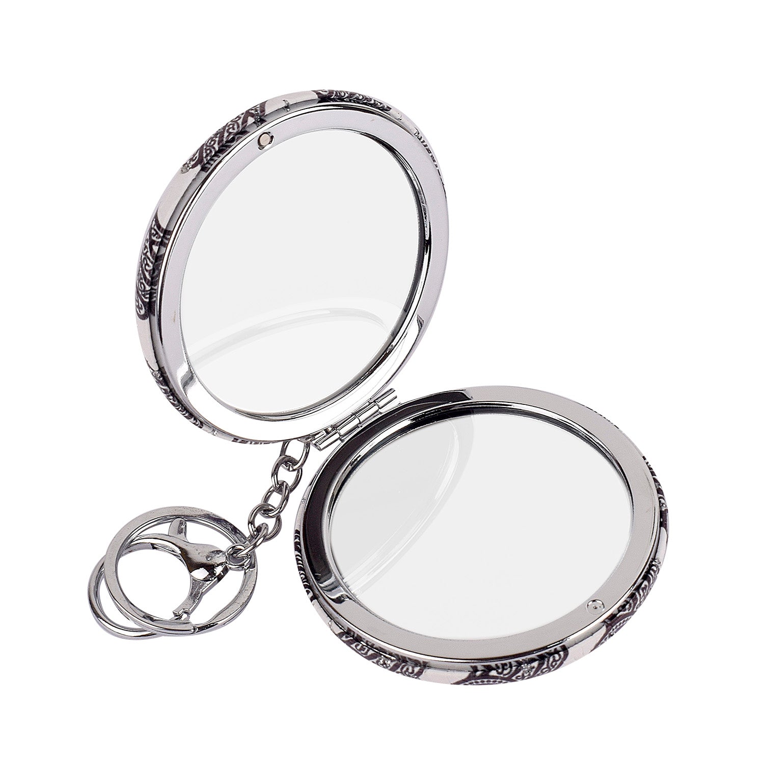 About the Product: Elevate your style with our Round Evil Eye Keychain featuring a convenient foldable mirror. Clip it to your bag or keys for quick makeup checks on the go. Crafted with durability in mind, it's both stylish and protective, adding charm to your accessories.