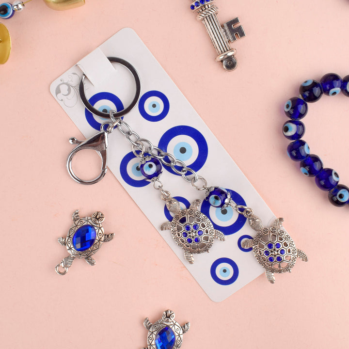 Evil Eye 2 Tier Turtle Metal Keychain | Buy Online | Satvikworld.com