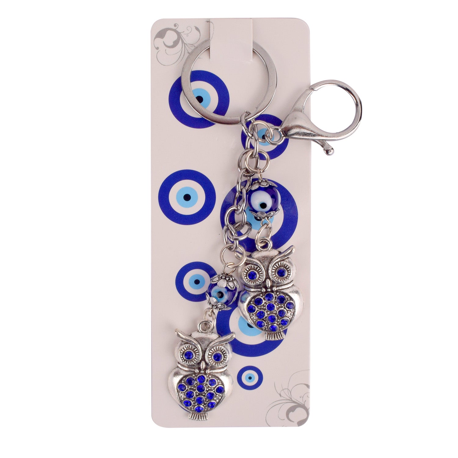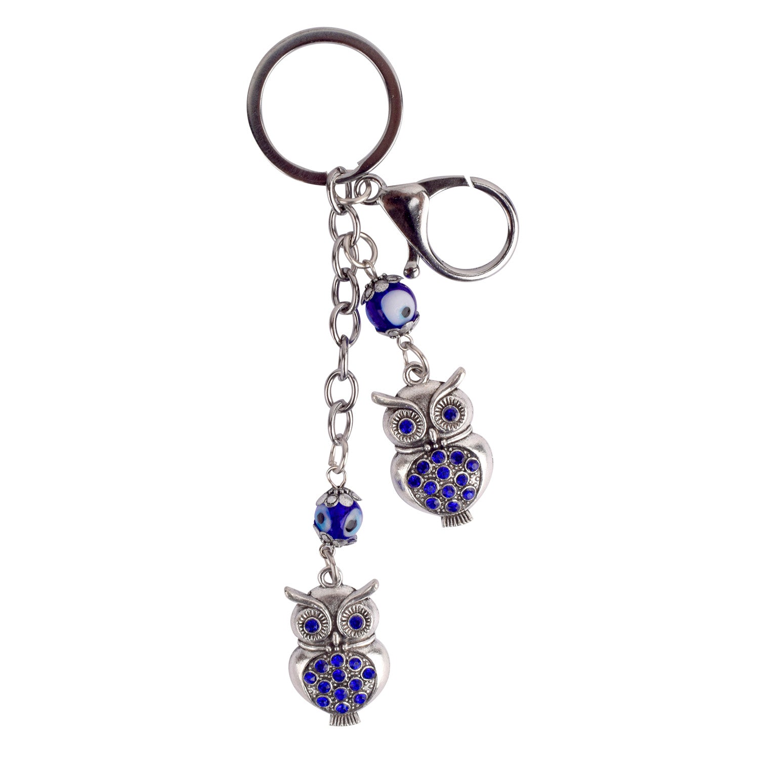 Silver Double Owl Keychain with Evil Eye – Satvikworld.com