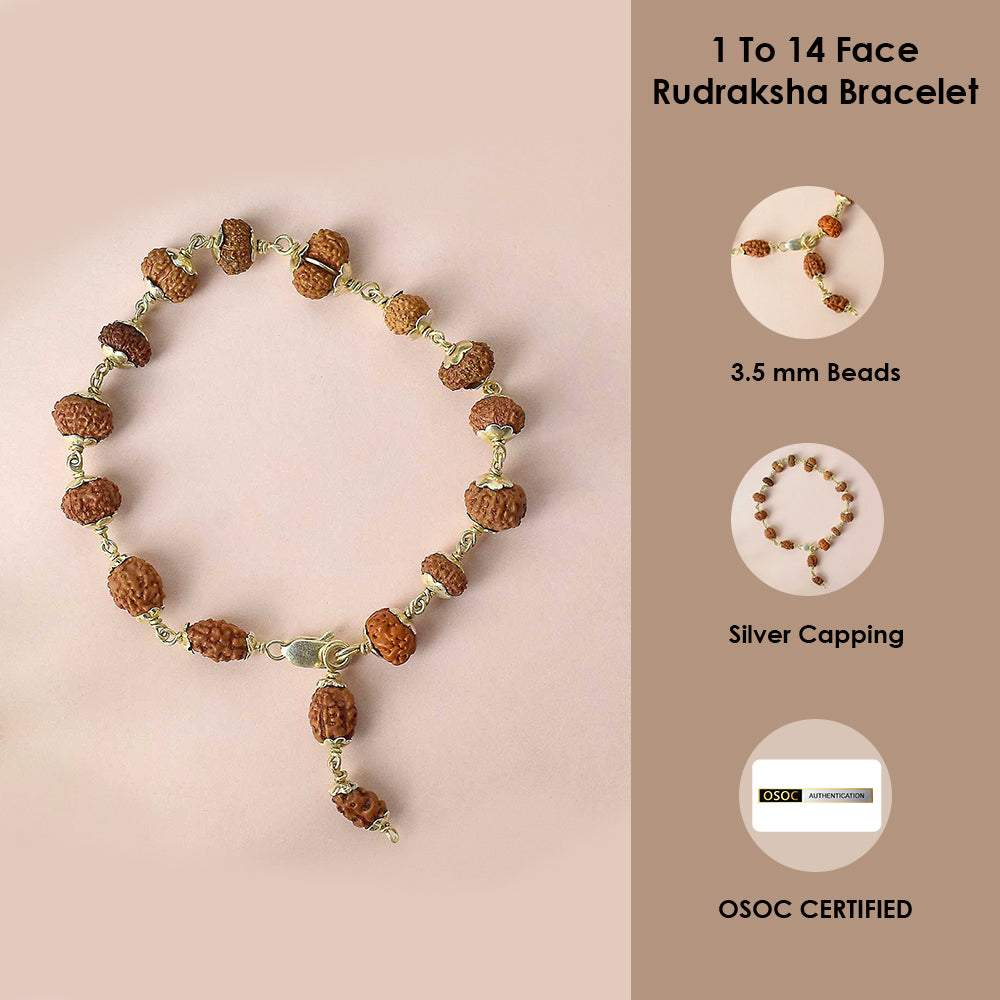 • Item Name: Certified 1 to 14 Face Rudraksha Bracelet with Silver Capping