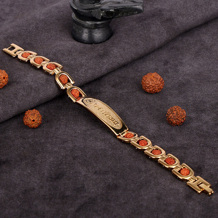 Om Namah Shivay Rudraksha Bracelet Gold Plated Premium IGP Coating
