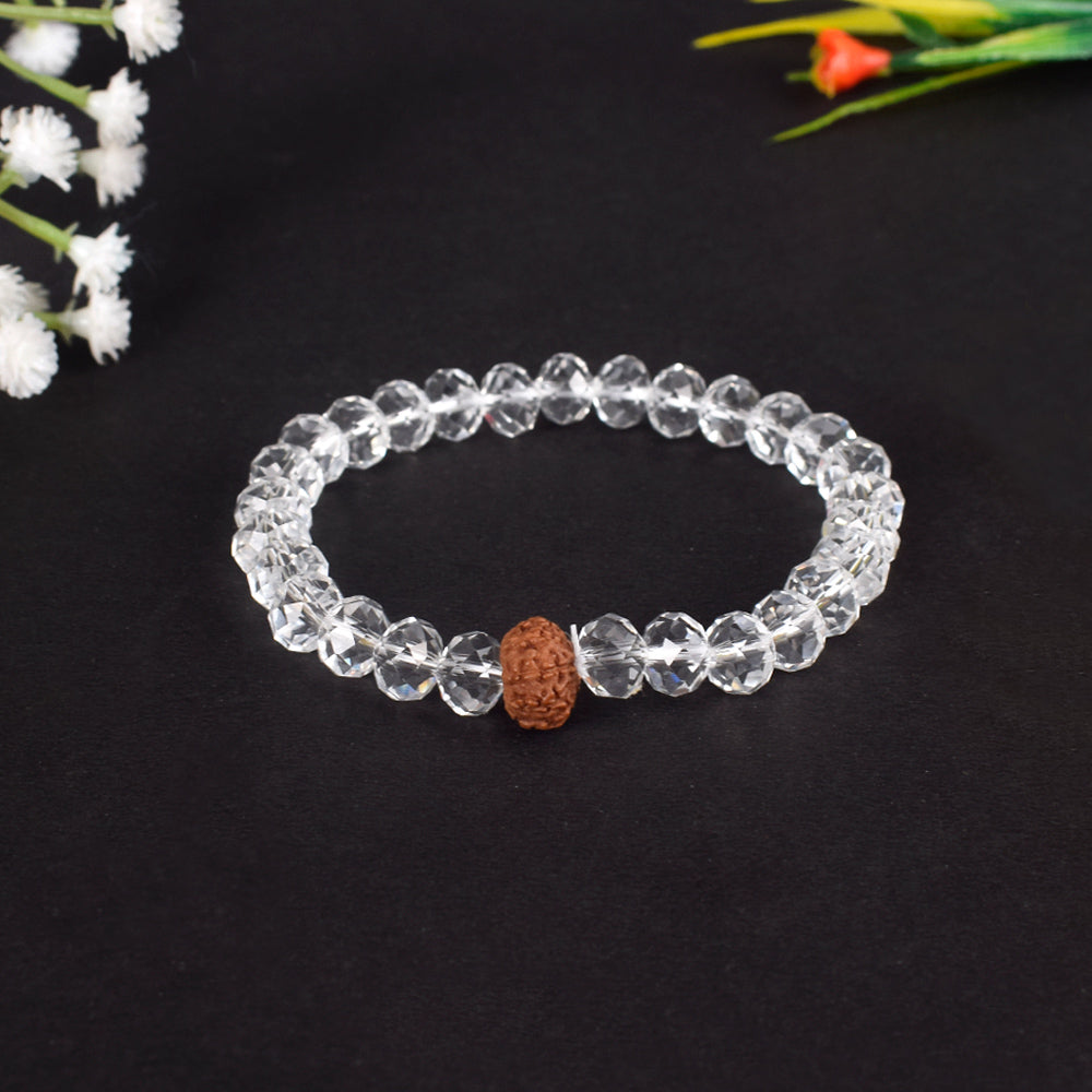 Buy 10 Mukhi Rudraksha Bracelet with Sphatik Beads | Satvikworld.com