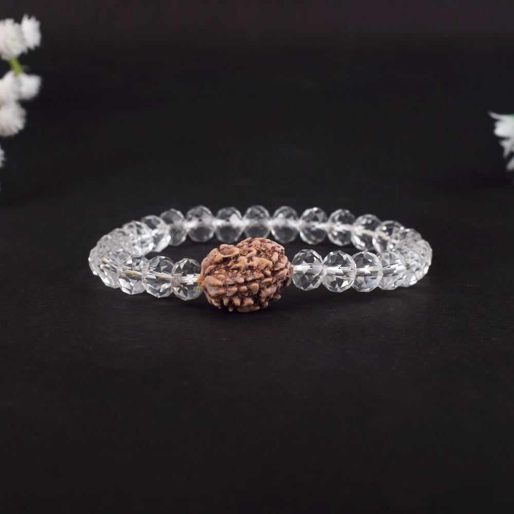 • Item Name: 3 Mukhi Rudraksha & Sphatik Bead Bracelet for Energy and Transformation