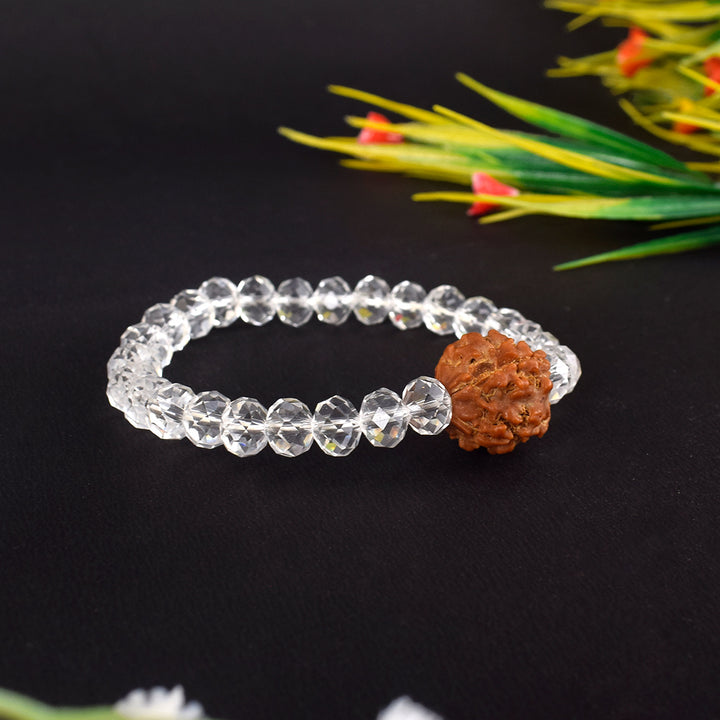 Buy 4 Mukhi Rudraksha Bracelet with Sphatik Beads | Satvikworld.com