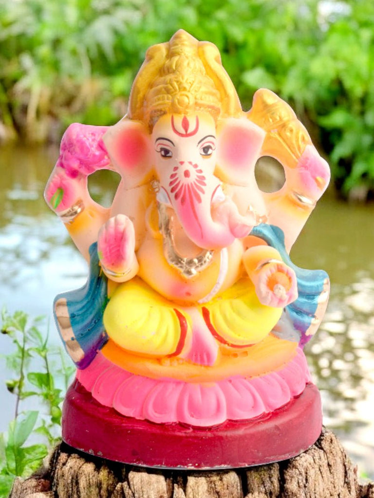 Eco-Friendly Ganesha statues are made of 100% biodegradable and eco-friendly material by using Shadu Mati Clay Mitti, which dissolves easily in water. The colours used are also natural, and they decompose and dissolve in water easily. Although they have been made all across India, West Bengal and Maharashtra often employ skilled artisans to make them.
