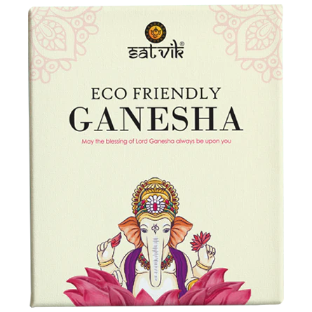 SATVIK Eco-Friendly Ganesha is made of 100% biodegradable and eco-friendly material made of Indo-Gangetic or clay deposits near other holy rivers with spiritual value, which dissolves easily in water. These are designed and made by highly skilled artisans in Maharashtra and West Bengal.