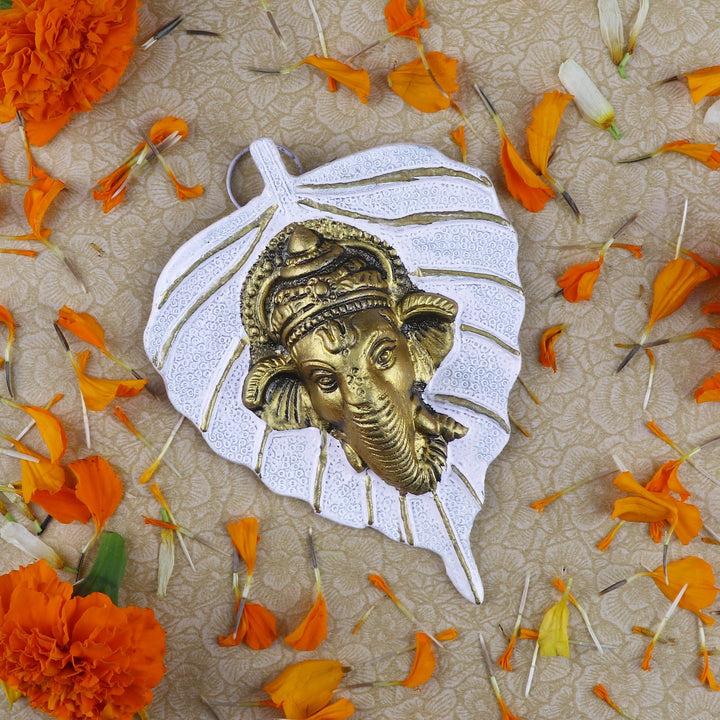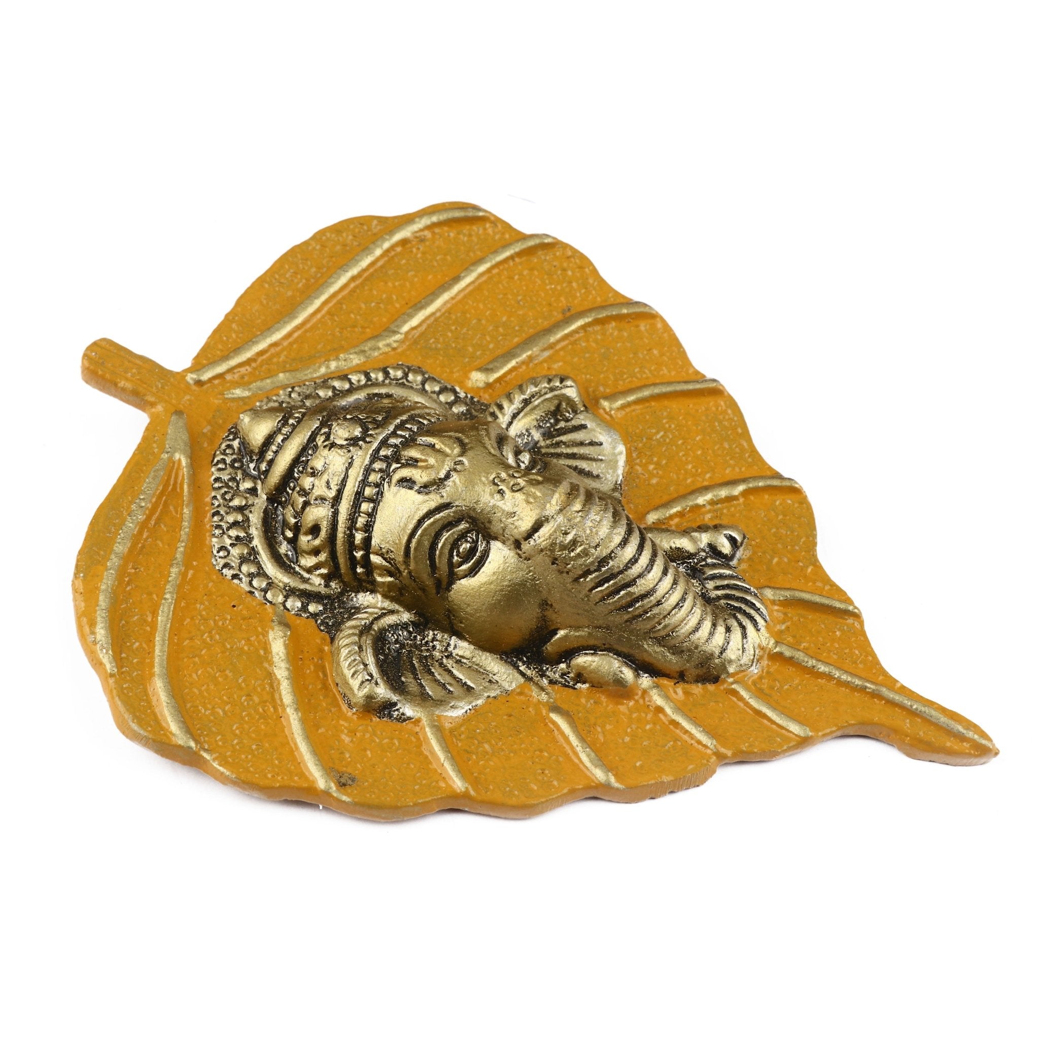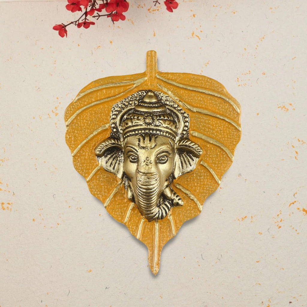 Buy Ganesh Face on Leaf Patta Wall Hanging Yellow | Satvikworld.com
