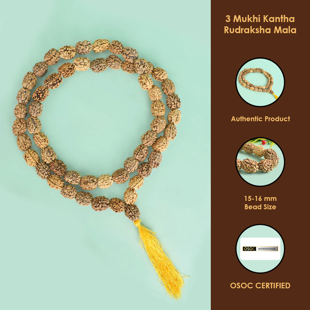• Item Name: 15-16mm 3 Mukhi Kantha Rudraksha Mala