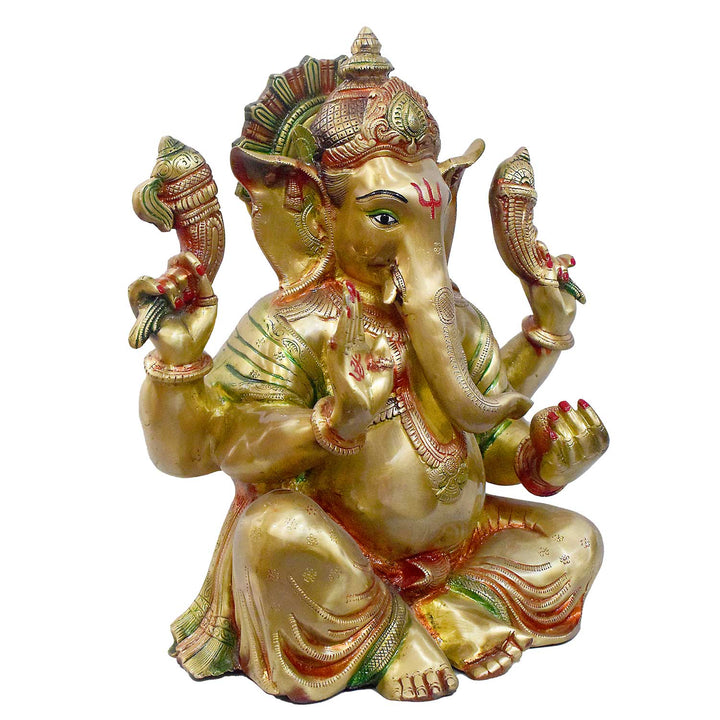 18 Inch Grand Brass Ganesha Idol – Divine Artisan Masterpiece