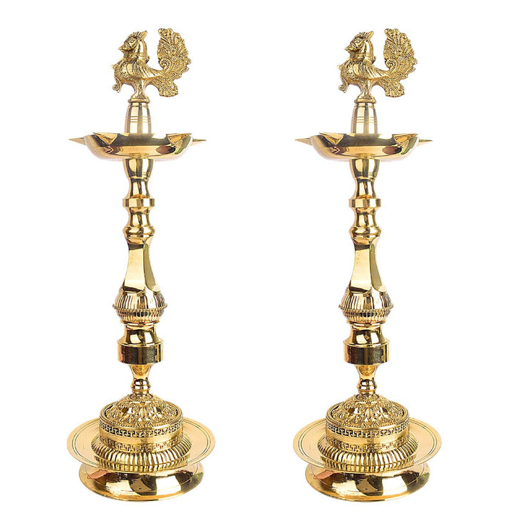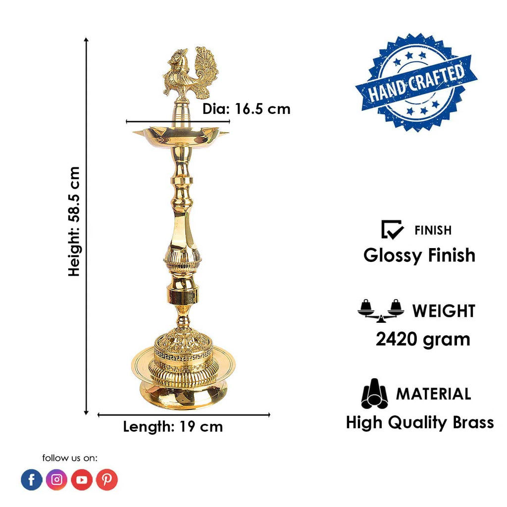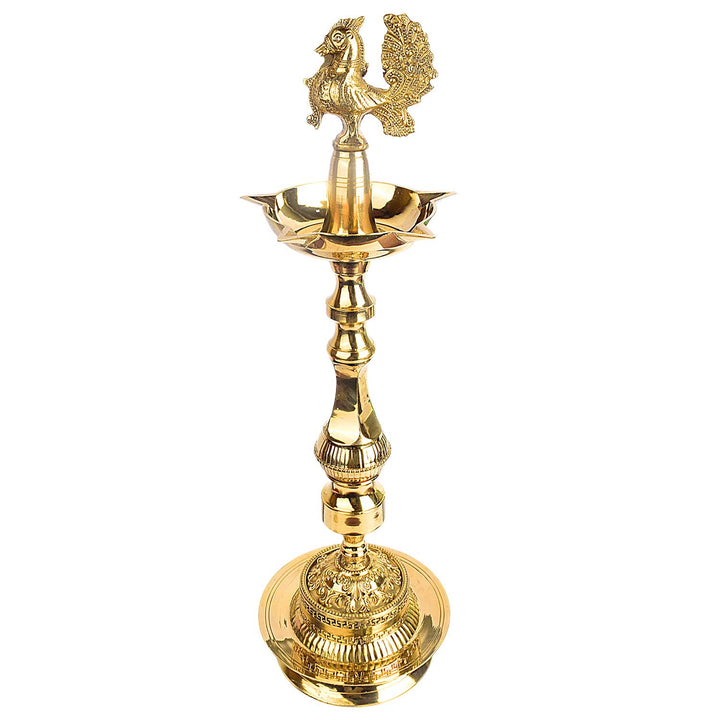 21 Inch Embossed Brass Peacock Kerala Samai Diya | Brass Peacock Diya | Kerala Samai Deepam | Embossed Brass Diya | Traditional Kerala Diya | Brass Oil Lamp | Spiritual Brass Lamp | Pooja Diya | Peacock Design Diya | Kerala Temple Lamp | Indian Ritual Lamp | Brass Diya for Pooja