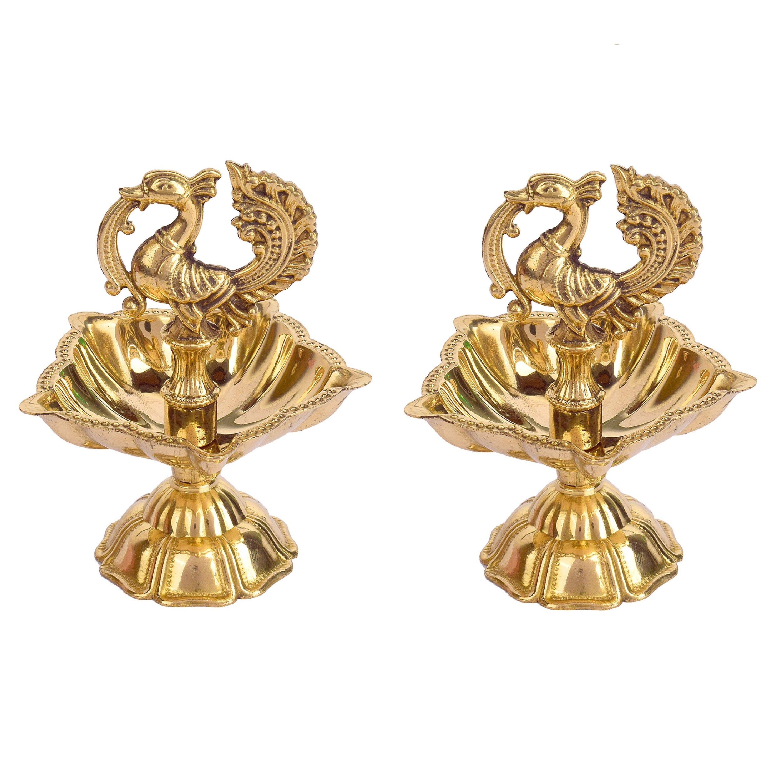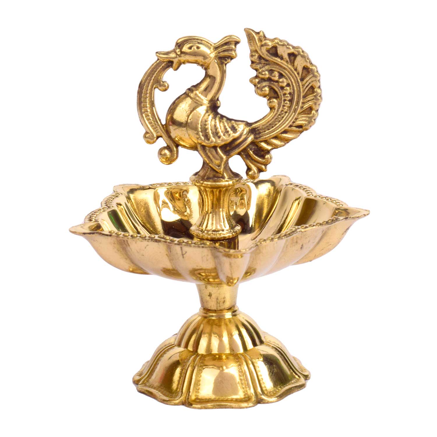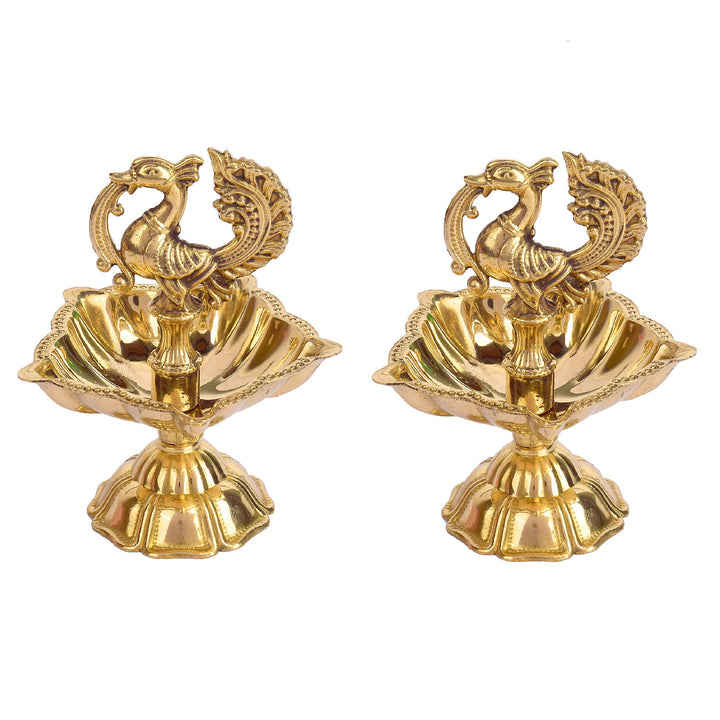 • Item Name: 3–3.5 Inch Peacock Brass Diya (Small)– Elegant Brass Oil Lamp