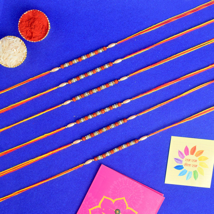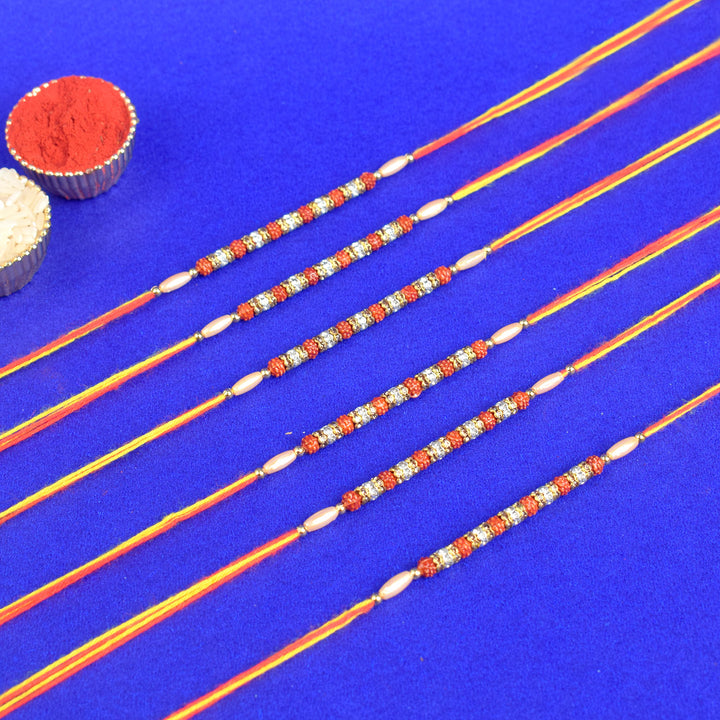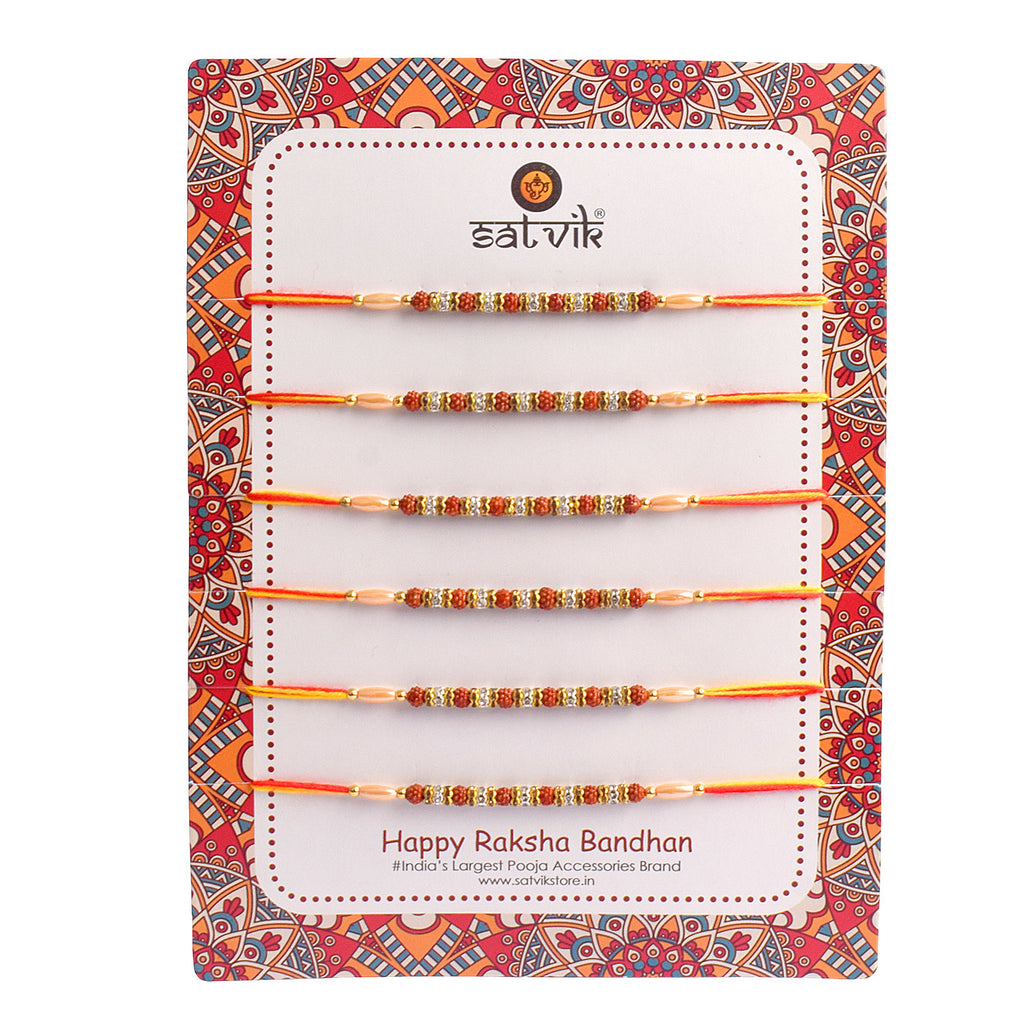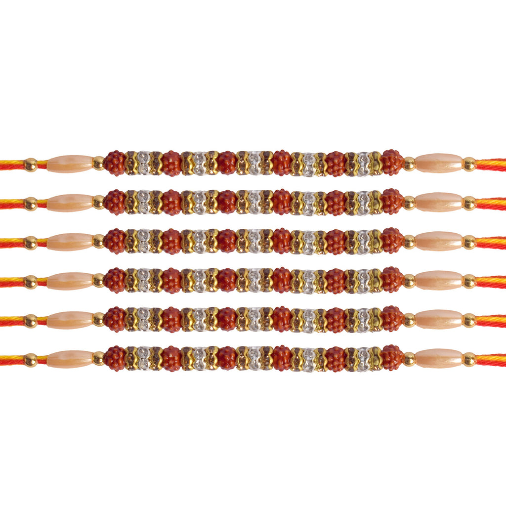 Beautiful Beaded Rudraksha Rakhi Set (Pack of 6)