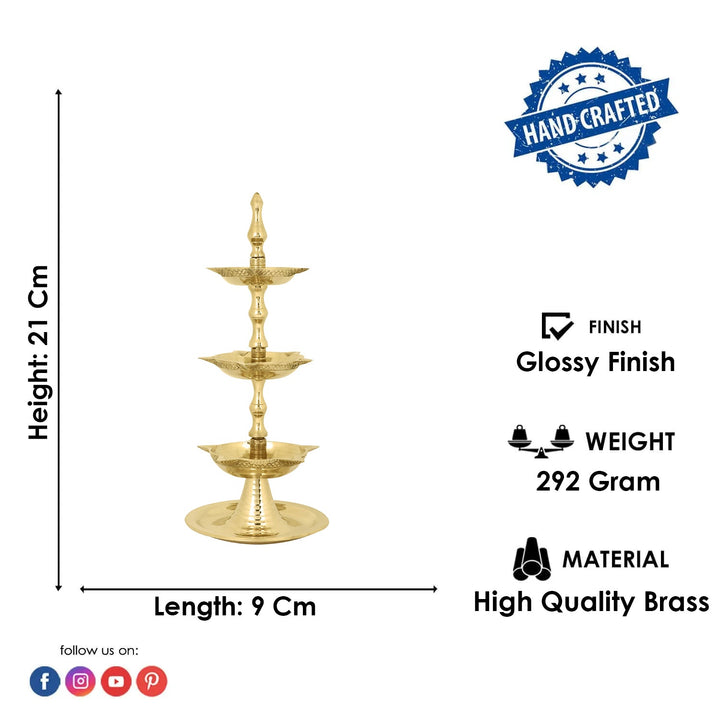 Brass 3 Step Kerala Inauguration Diya | 3 Step Brass Diya | Kerala Inauguration Lamp | Traditional Kerala Deepam | Brass Oil Lamp | Multi-Tier Brass Diya | Spiritual Brass Lamp | Temple Deepam | Brass Pooja Lamp | Indian Ritual Lamp | Handcrafted Brass Diya | Brass Samai Deepam