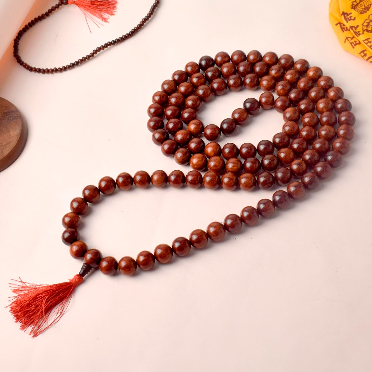 Red Sandalwood Jap Mala | Chandan Mala for Meditation | Natural Red Sandalwood Rosary | Handmade Chandan Beads Mala | Sandalwood Mala for Prayer | Mala for Hanuman Mantra |