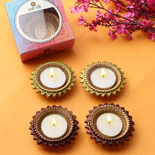 About Product: Satvik Presents Decorative Designer Multicolor Lotus Flower Shape Chandrarupa Metal Diya used for lighting lamp using cotton wicks or candle Tea Light. It is an integral custom or tradition to start all the auspicious events by lighting the lamp to create a spiritual atmosphere. Diyas are an essential part of Indian Festive Occasions or Diwali decorations. To considering this we came with beautiful range of Diwali Collections. You can decor your home on the Diwali festival with Diya, Tea-light holders, oil lamp your home.