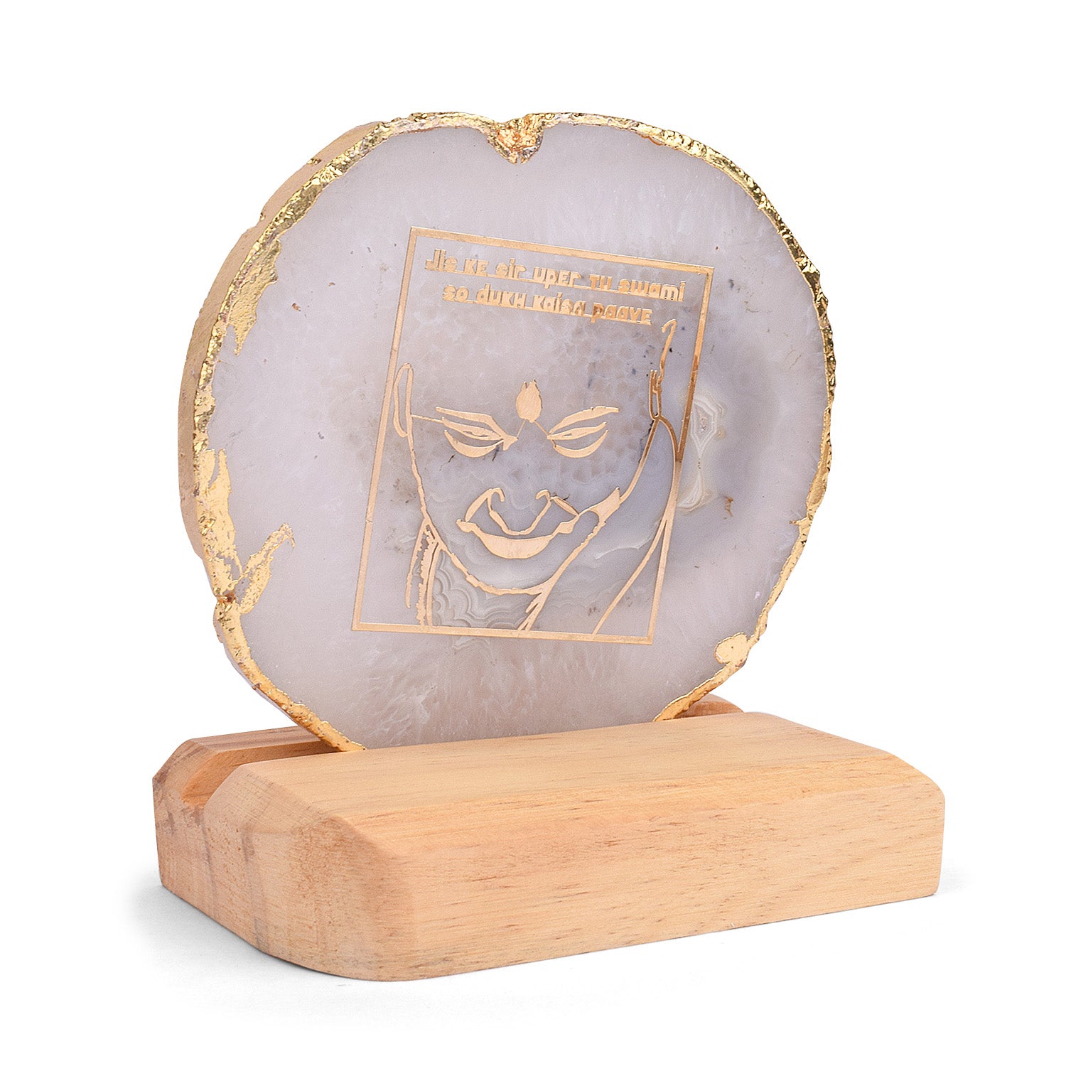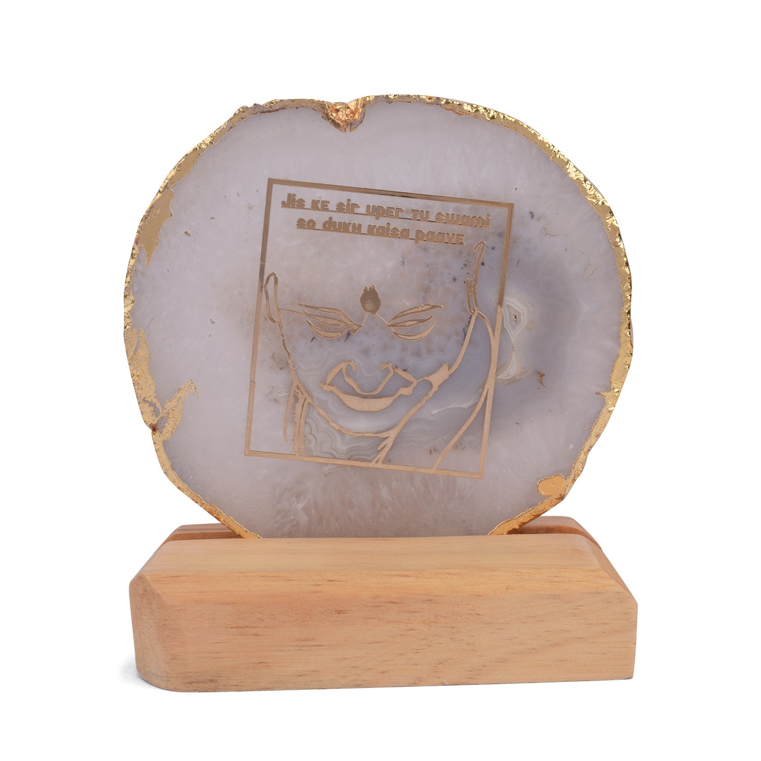 Guruji agate stand | Spiritual agate display | Guruji photo frame | Divine energy stone stand | Agate stone guru idol | Meditation decor stand | Agate spiritual decor | Guruji pooja stand | Crystal energy decor | Religious gift item |