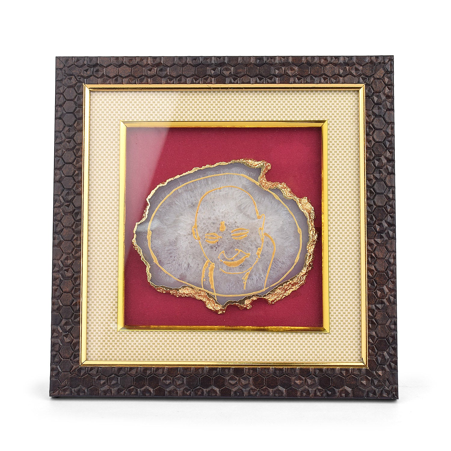 Guruji agate frame | Wooden Guruji photo frame | Spiritual agate decor | Guruji wall hanging | Blessings in agate | Guruji natural stone frame | Wooden spiritual frame | Agate stone wall art | Religious gift item | Home altar decor |