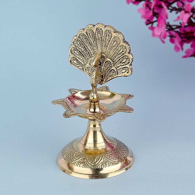 • Item Name: Handcrafted Brass Flying Peacock Kerala Samai Deepam Puja Diya