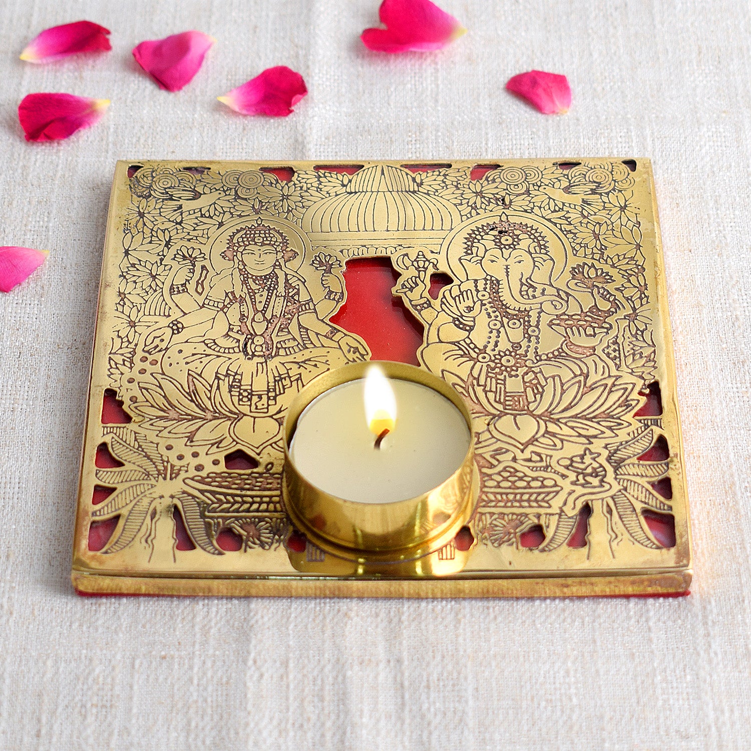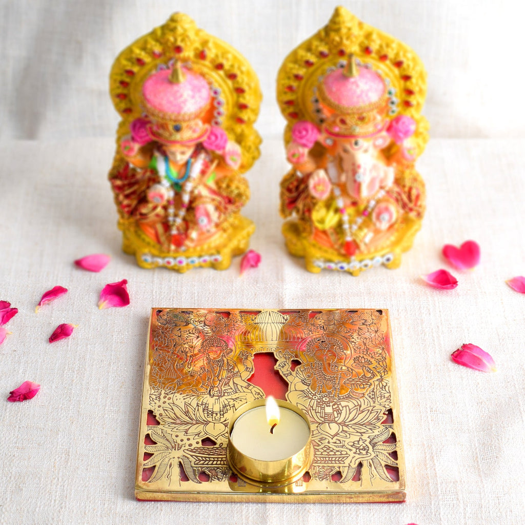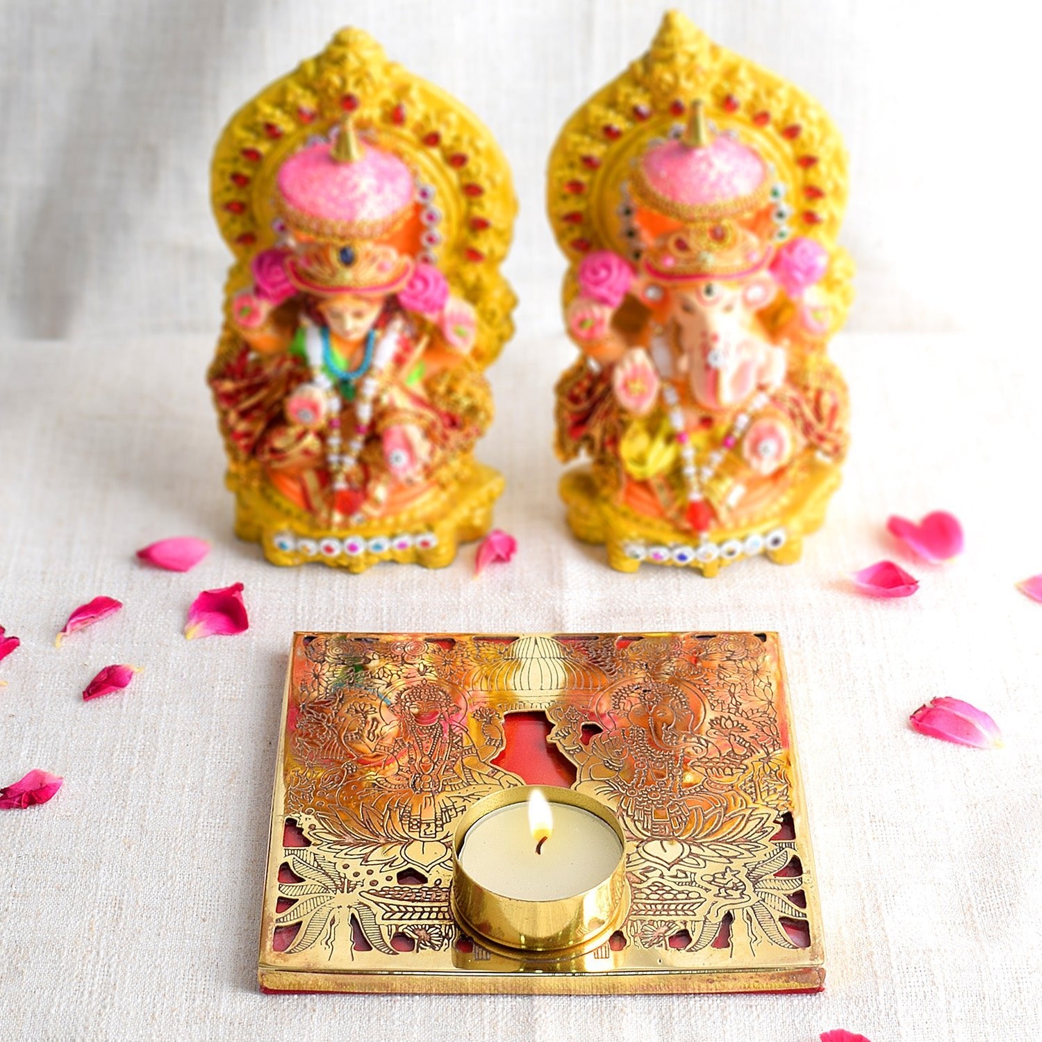 Laxmi Ganesh Tea Light Candle Holder with Tealight – Satvikworld.com
