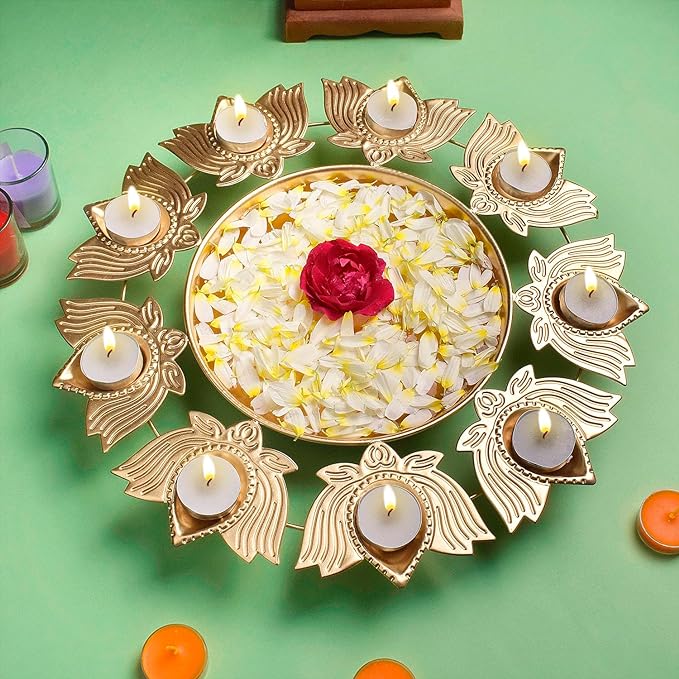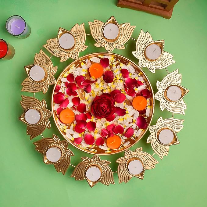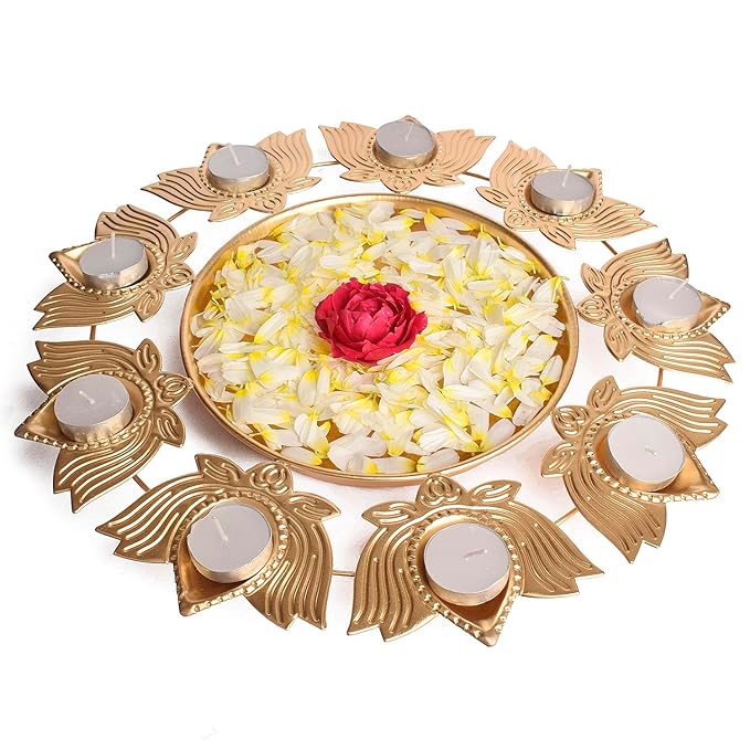 Lotus Petals Shape Metal Urli With Tea Light