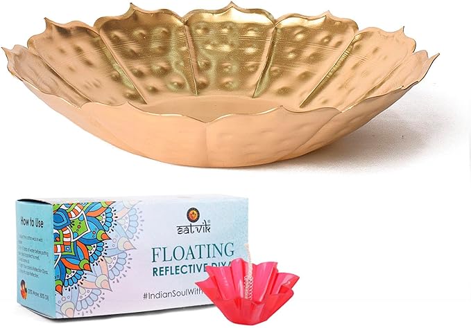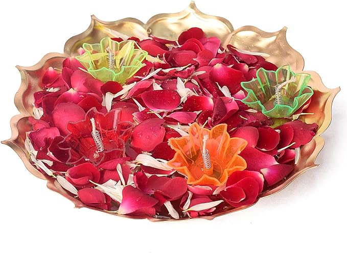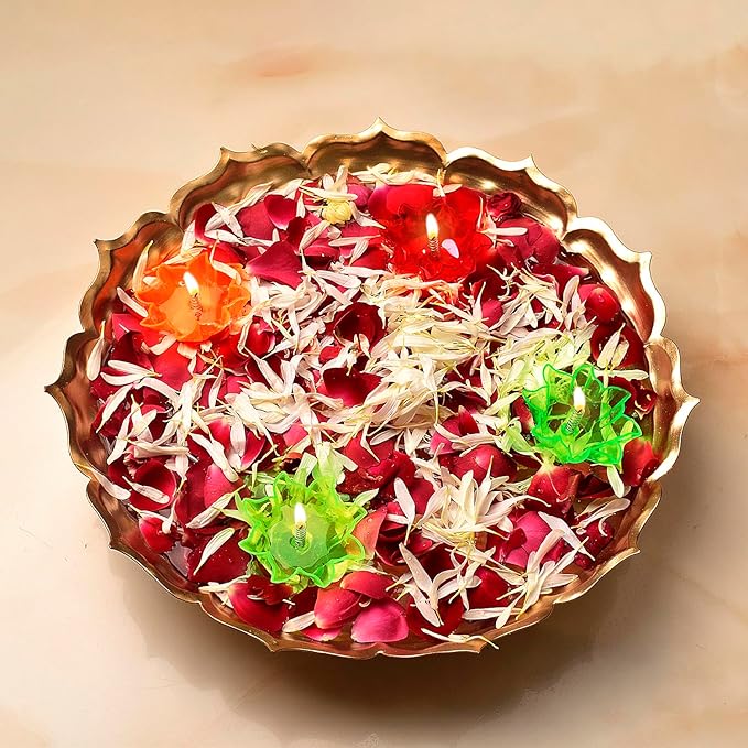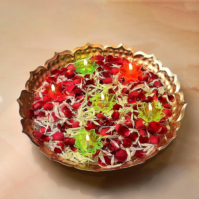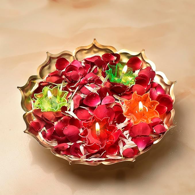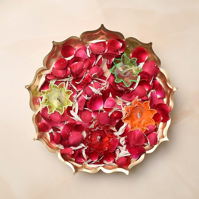 Metal Lotus Shape Urli for Decor With Floating Diya