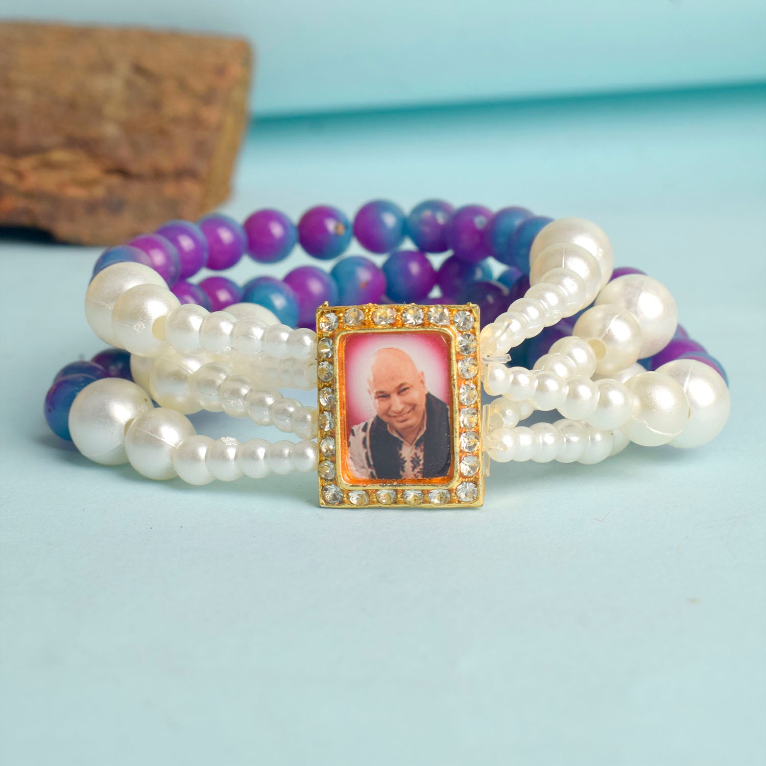 Buy Online | Purple & Blue White Pearl Guruji Swaroop Bracelet | satvikworld.com – Satvikworld.com
