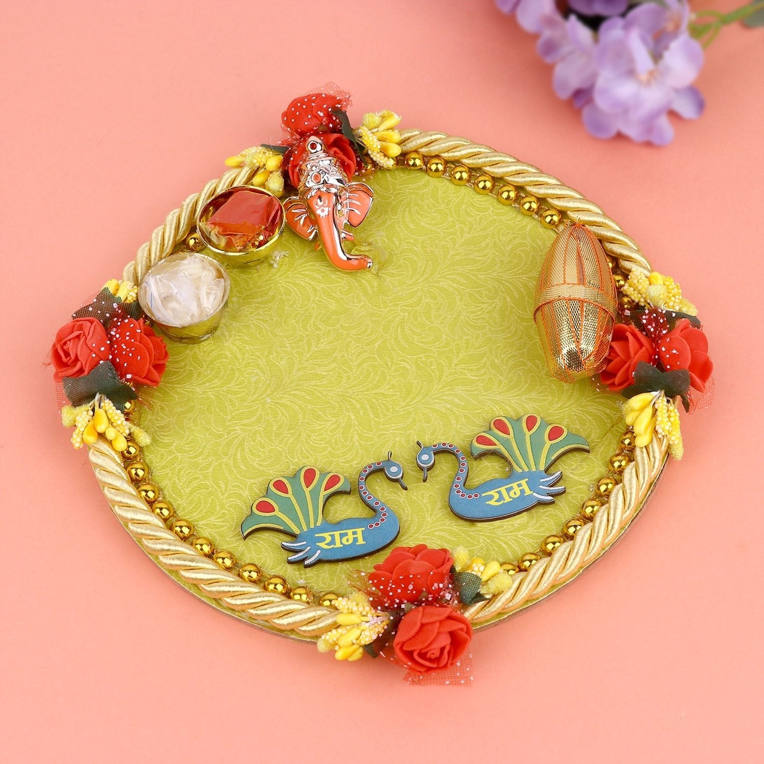 Stunning Rakhi Combo: Thali, Roli-Chawal, and Swastika Rakhi – Satvikworld.com