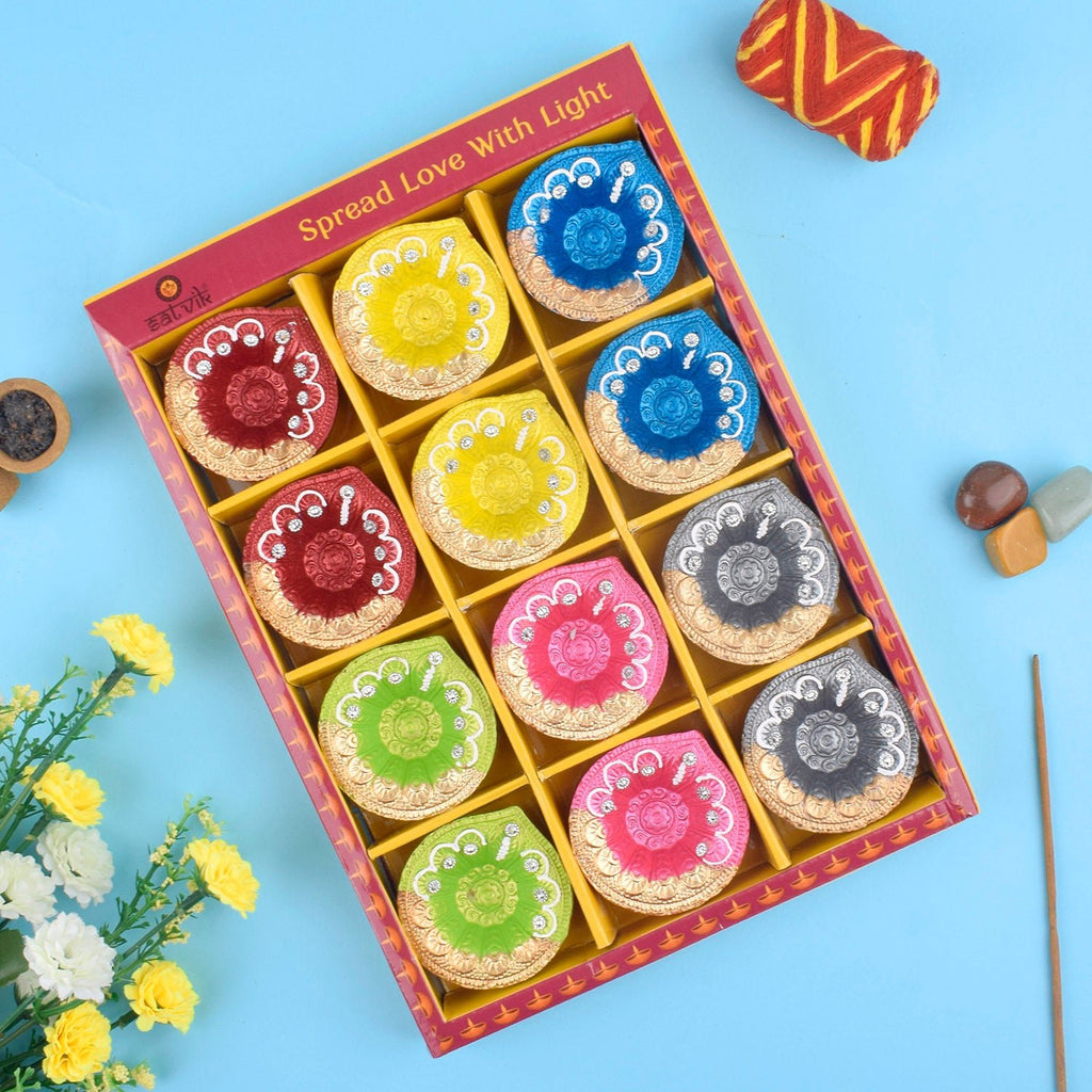 Timeless Light Handcrafted Clay Diyas to Celebrate Diwali Set of 12